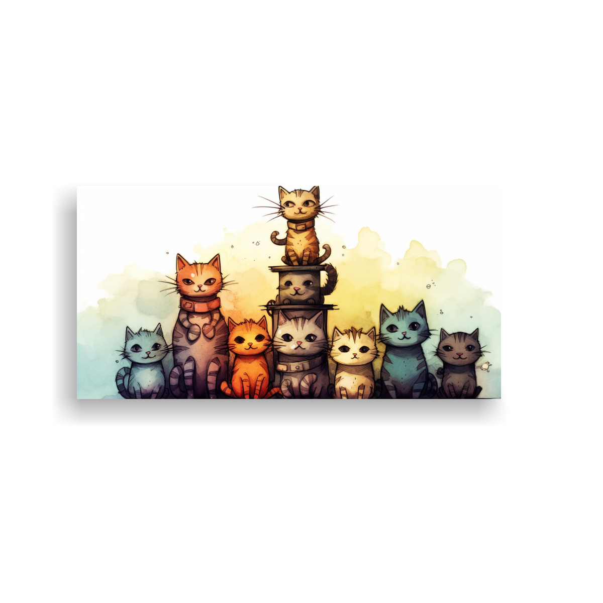 Coloca este cuadro en tu sala de estar o en la habitación de los niños para crear un ambiente alegre y acogedor Combínalo con cojines en tonos neutros para resaltar los colores vibrantes de los gatos y lograr un espacio armonioso y lleno de personalidad