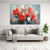 Cuadro Tema Fantástico En Rojo Y Turquesa: Pintura De Flores En Lienzo