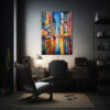 DecoCuadros ofrece cuadros decorativos impresos en tela de alta calidad con bastidores de madera Nuestro Cuadro Tema floral Pinta un paisaje urbano con un vibrante arcoíris de luces de neón es la opción perfecta para aquellos que buscan agregar un toque moderno y vibrante a su hogar Con una combinación de colores como Coral, Azul Marino grisaceo, Gris, Turquesa, Plateado, Verde Azulado y Carmesí, este cuadro seguramente llamará la atención de tus invitados Nuestros cuadros cuentan con diseños exclusivos de nuestra tienda y ofrecemos la mejor calidad del mercado a precios económicos Además, nuestras entregas son rápidas y gratuitas en Santiago, y también ofrecemos envíos express a regiones