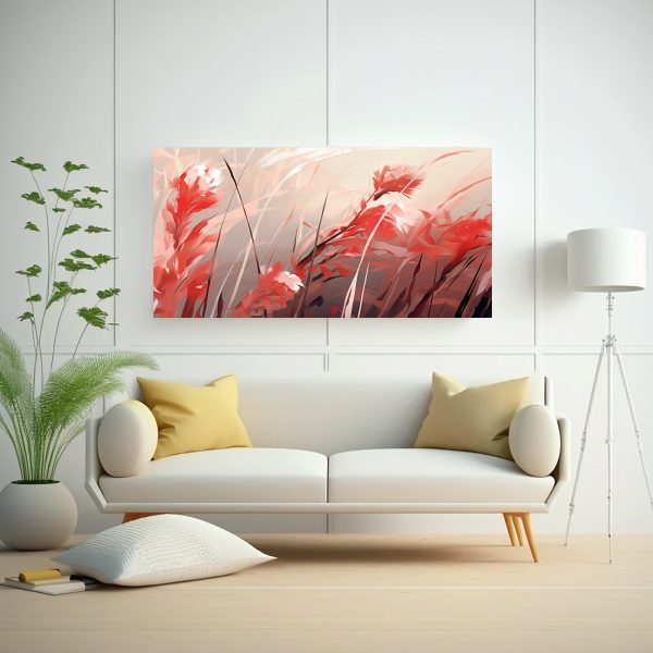 Cuadro Tema Habitación Hierba De Reed En Blanco Y Rojo Atmosfera Neonoir