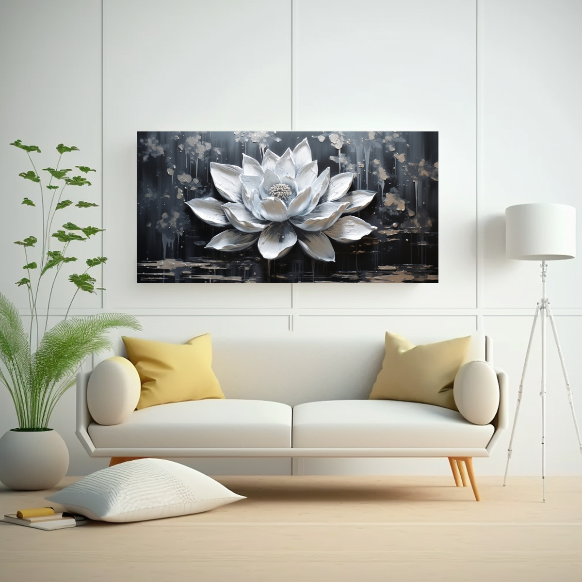Este cuadro Tema Intenso con loto negro sería ideal para decorar una pared en la sala de estar o el dormitorio, creando un ambiente sofisticado y moderno Combínalo con muebles en tonos neutros para resaltar su elegancia