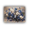 Cuadro Temático De Flores En Azul Y Dorado Sobre Lienzo.