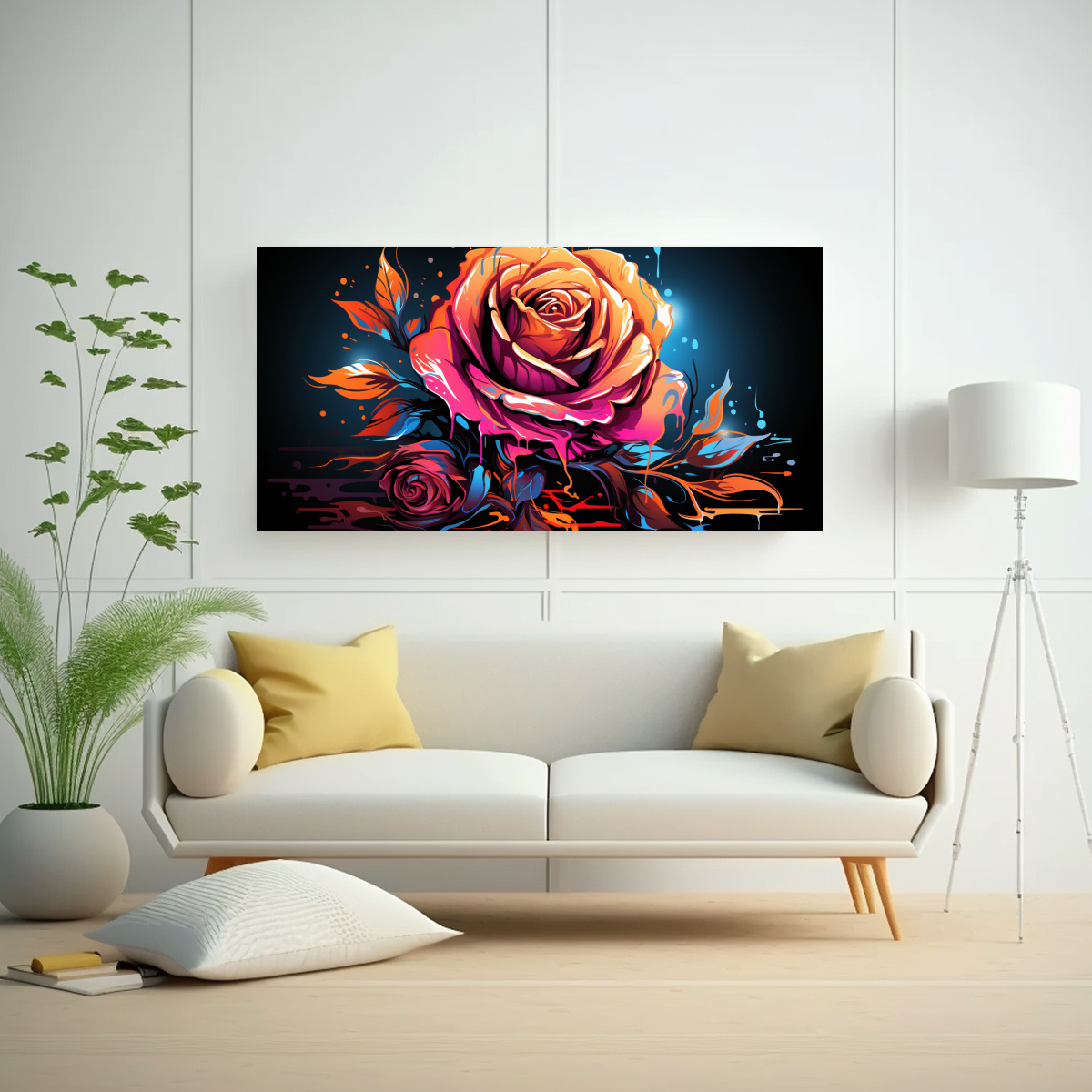 Nuestro cuadro temático Lienzo Cálidos Diseño rosa estilo graffiti es el complemento perfecto para cualquier decoración Este cuadro, impreso en tela de alta calidad con bastidores de madera de pino, cuenta con un diseño exclusivo de nuestra tienda que le dará un toque único a tu espacio Su estilo graffiti y su colorido diseño de rosa lo convierten en una pieza llamativa y moderna que se adaptará a cualquier ambiente Además, su acabado en lienzo de galería le da un aspecto 3D más realzado y moderno Este cuadro viene listo para colgar, con el colgador ya colocado, lo que facilita su instalación Y lo mejor de todo es que ofrecemos la mejor calidad del mercado a precios económicos No te pierdas la oportunidad de adquirir este cuadro temático y añadir un toque de arte a tu hogar