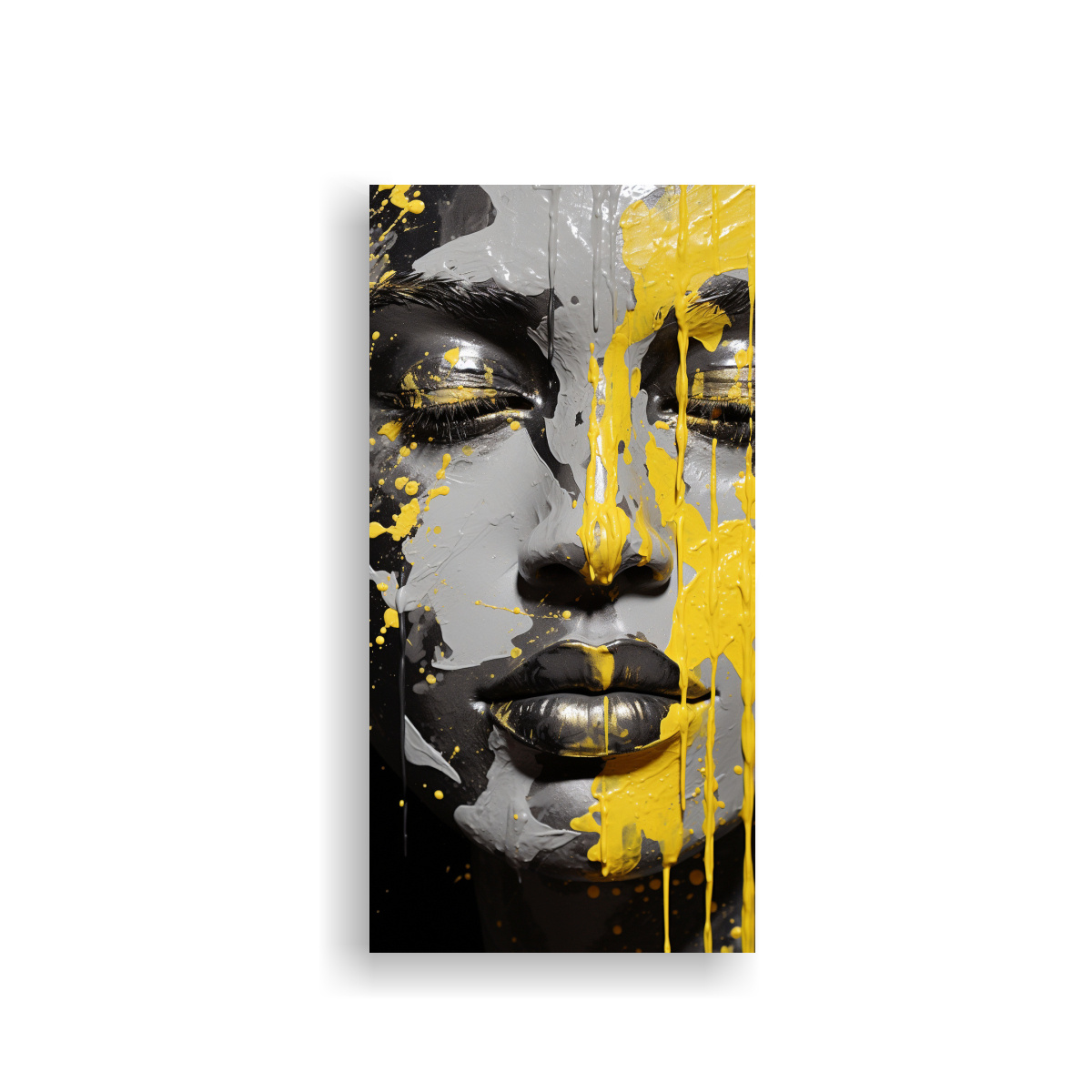 El Cuadro Tonos Armonía cromática facial contours and splashes silver and Yellow el de DecoCuadros es perfecto para añadir un toque de elegancia a cualquier espacio Sus tonalidades plateadas, azul marino grisáceo, dorado, negro, gris y beige se combinan en una armonía cromática que cautiva las miradas