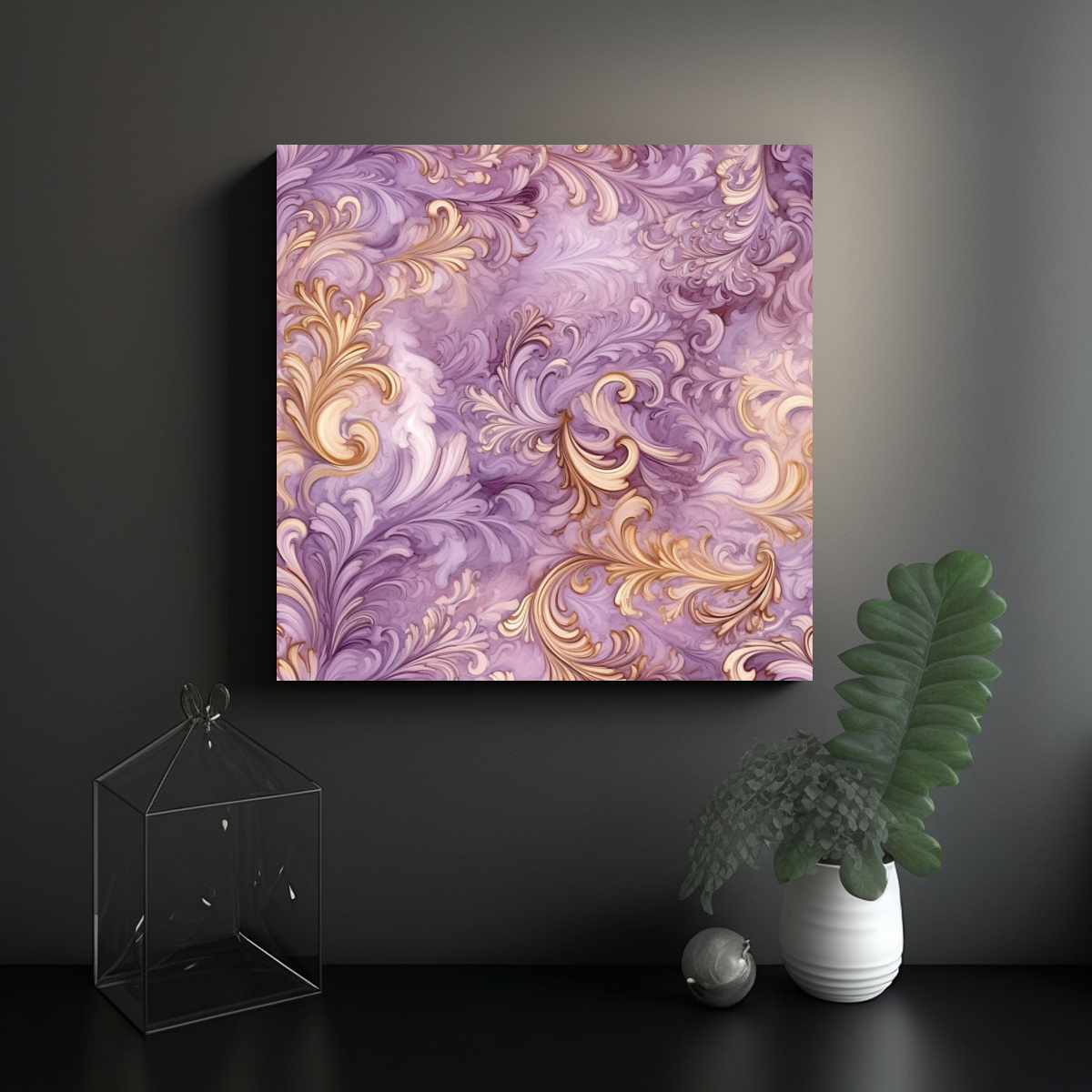 Este cuadro tonos mauve y oro en azulejo se vería espectacular en un ambiente con colores neutros como blanco y gris, aportando un toque de sofisticación y calidez Colócalo en el centro de una pared para que sea el punto focal de la habitación