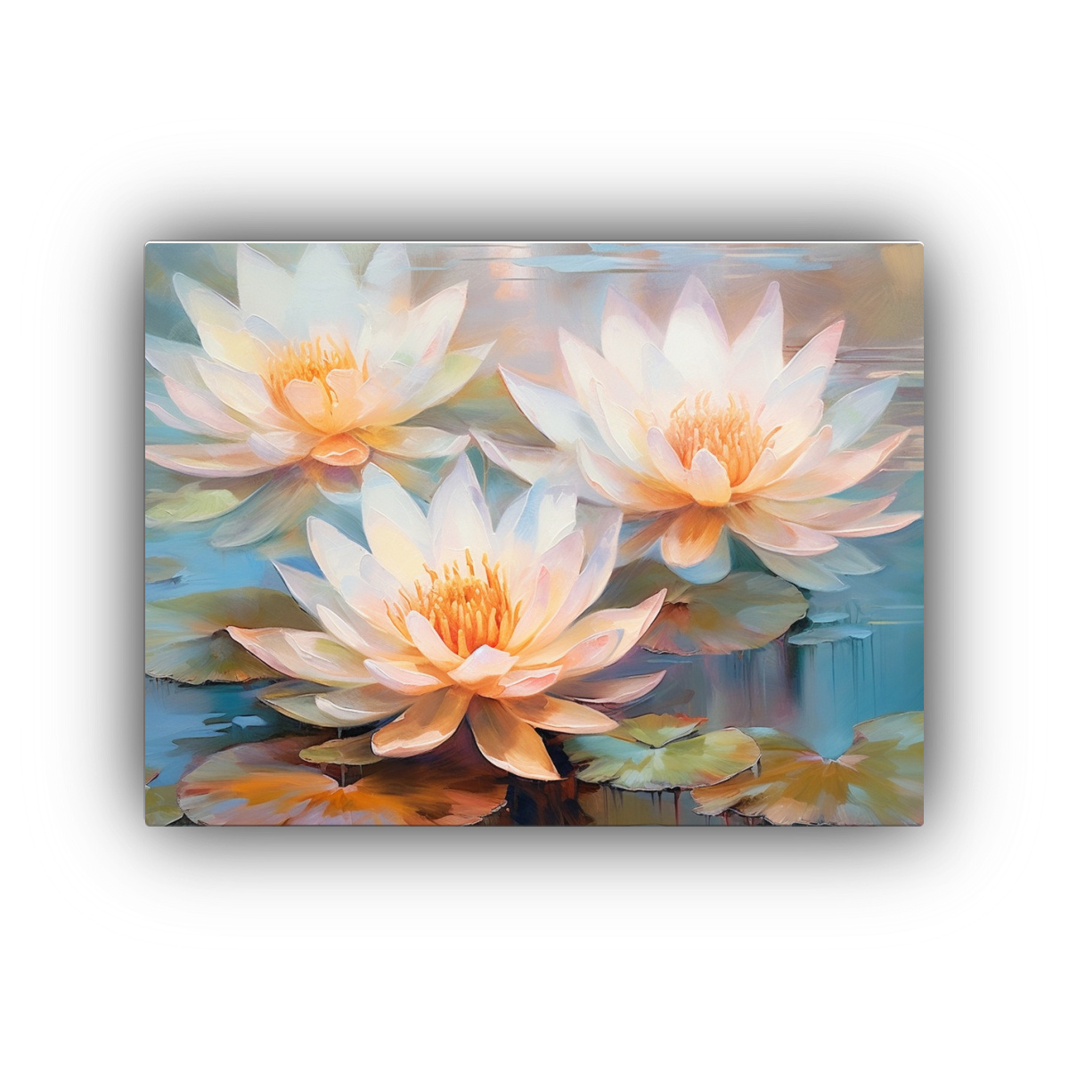 Cuadro Tres Nenúfares Frescos Estilo Pintura Equilibrio Colores