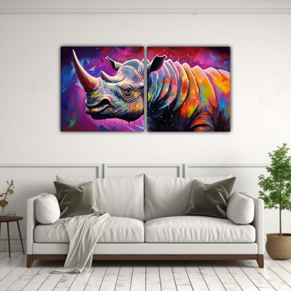 Coloca este Set de 2 Telas en Bastidor Triceratops en la sala de estar para darle un toque divertido y colorido al ambiente Combina con muebles en tonos neutros para resaltar su belleza única y crear un espacio acogedor y moderno