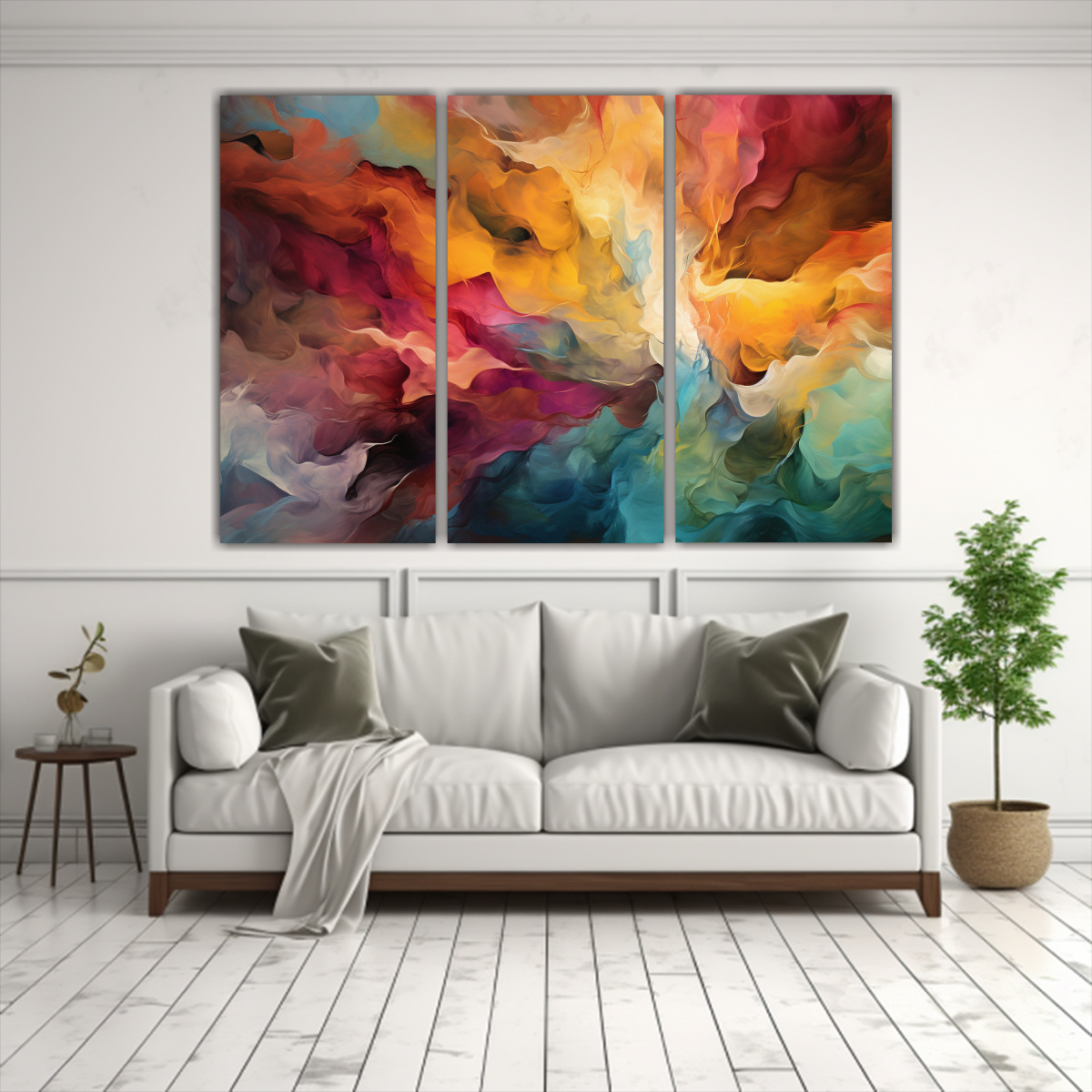 Renueva tu espacio con este tríptico abstracto que aporta armonía y sofisticación Colores vibrantes y elegantes para crear un ambiente único Envíos rápidos y gratuitos en Santiago, ¡adquiere diseños exclusivos hoy!