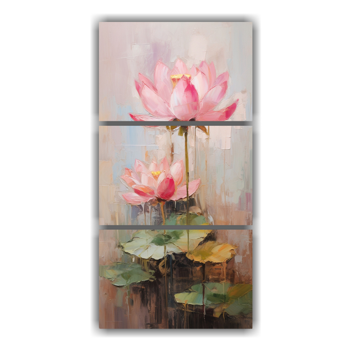 Cuadro Tríptico Moderno: Loto Rosa Sobre Lienzo Estilo Pintura Decorativa.