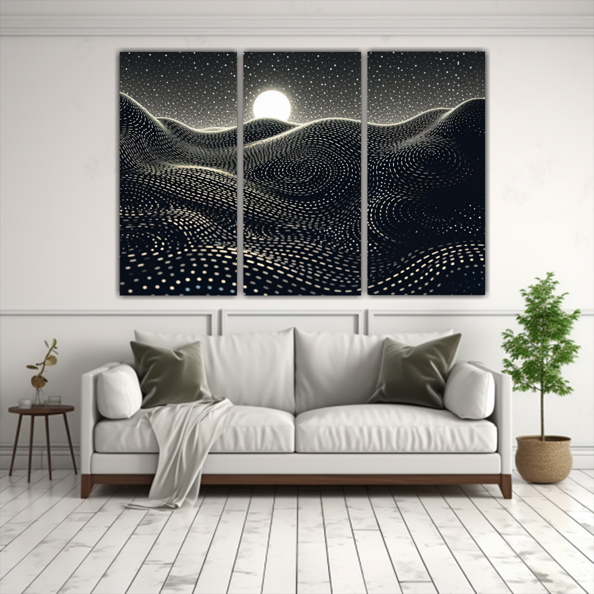Cuadro Tríptico Original: Amanecer De Infinitos Puntos Representativos.