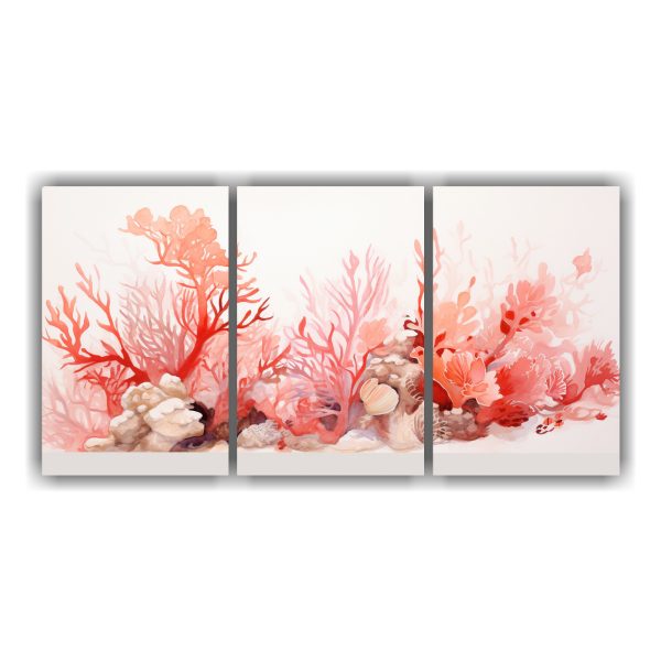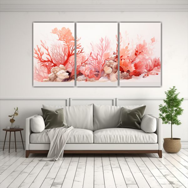 Coloca este cuadro tríptico en la pared de tu cocina para crear un ambiente vibrante y elegante Combina perfectamente con muebles blancos o de madera clara, resaltando los tonos coral y terracota para un espacio acogedor y moderno