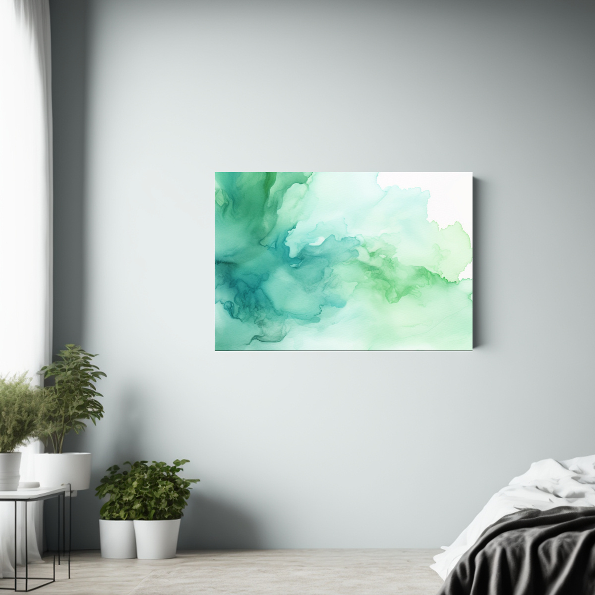 Cuadro único Con Acuarela En Tonos Cian Claro Y Verde Claro