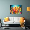 Cuadro Urbano Abstracto Con Rascacielos Vibrantes.