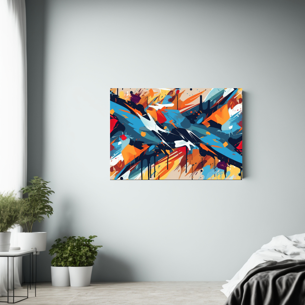 Este cuadro se verá espectacular en una sala de estar de estilo industrial, complementando la decoración con muebles de metal y tonos neutros Colócalo como punto focal en la pared principal para darle un toque de color y movimiento