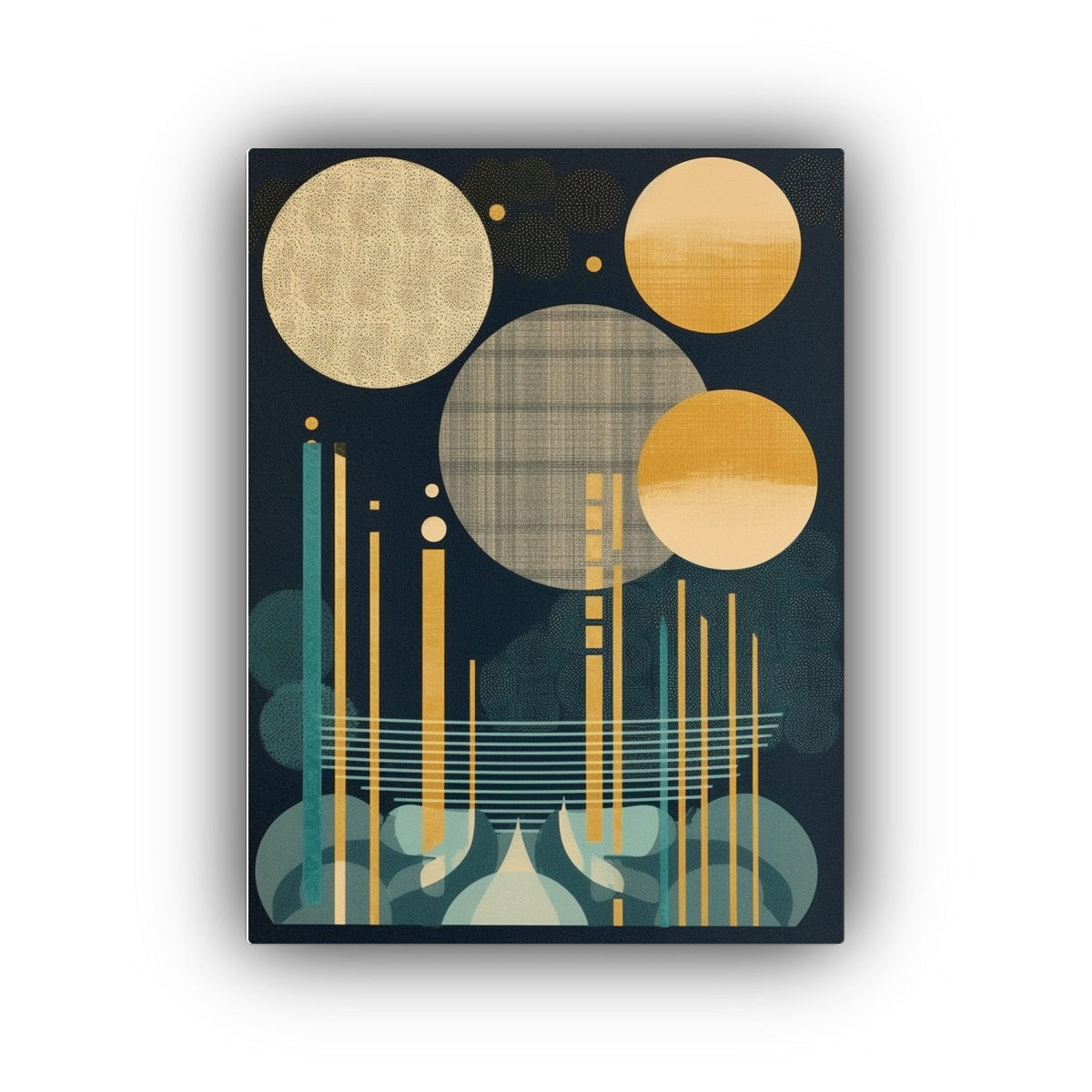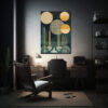 DecoCuadros presenta el Cuadro Vanguardia Belleza natural con fases de la luna Destaca por sus círculos amarillos, azules y grises en una pintura de decoración Diseño exclusivo con la mejor calidad y precios económicos