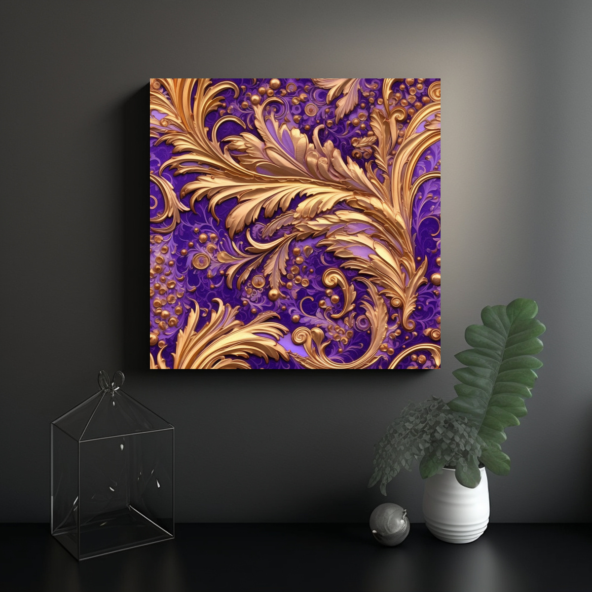 Cuadro Vanguardia Espacio: Pintura Morada Y Dorada Sobre Azulejo En Estilo Lujoso