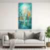 Este cuadro en tonos turquesa es perfecto para decorar el salón o la sala de estar Combínalo con muebles y accesorios en colores neutros como blanco o gris para resaltar su belleza También puedes colocarlo en la habitación principal para crear un ambiente relajante y elegante ¡Sorprende a tus invitados con este cuadro de diseño exclusivo de DecoCuadros!