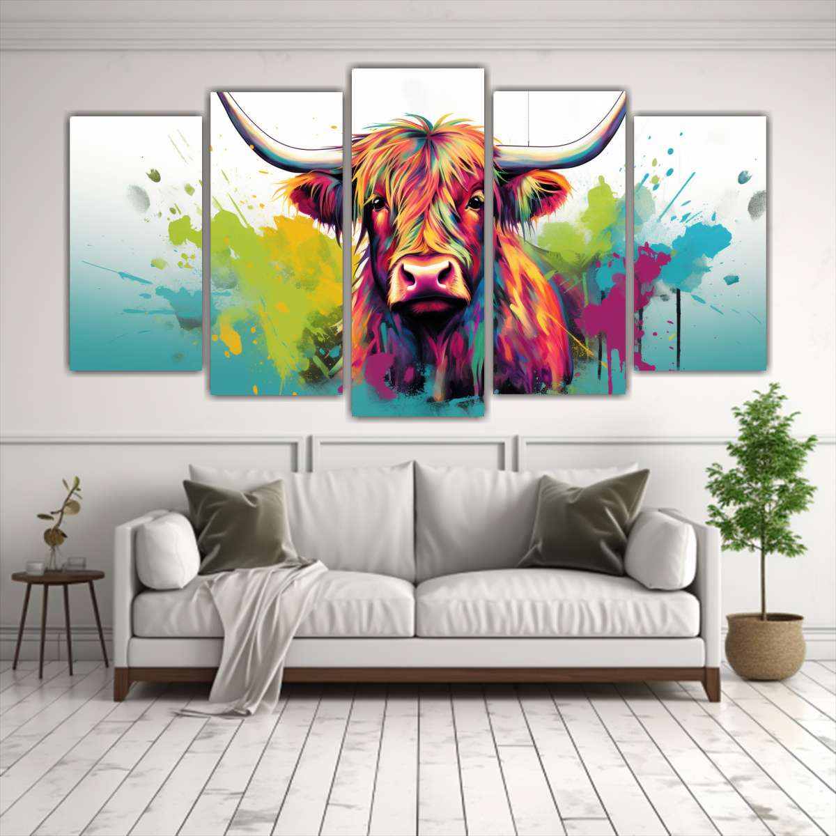 Renueva tu hogar con este cuadro vanguardista de una Vaca de las Highlands en colores vibrantes y verde Los tonos de menta, carmesí y mostaza le darán un toque único a tu decoración ¡Diseño exclusivo y entrega rápida garantizada!