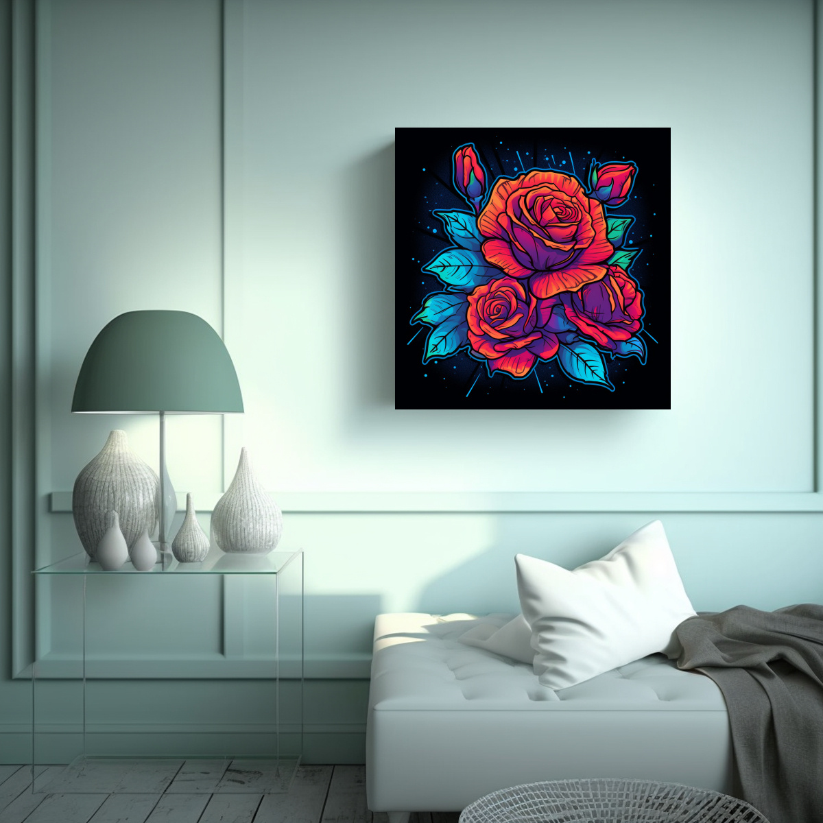 Cuadro Vanguardia Vida Con Imagen Vectorial De Rosa Estilo 80s