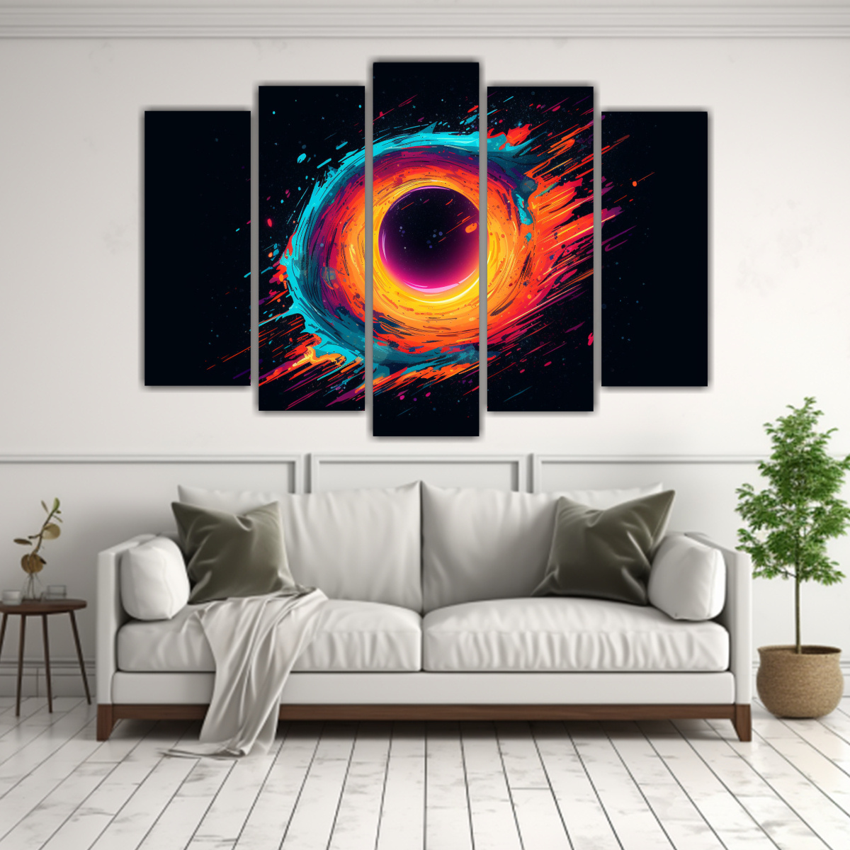 Coloca este Cuadro de un agujero negro en tu sala de estar para crear un ambiente futurista y misterioso Combínalo con muebles en tonos neutros para un contraste impactante ¡Sorprende a tus invitados con esta pieza única!
