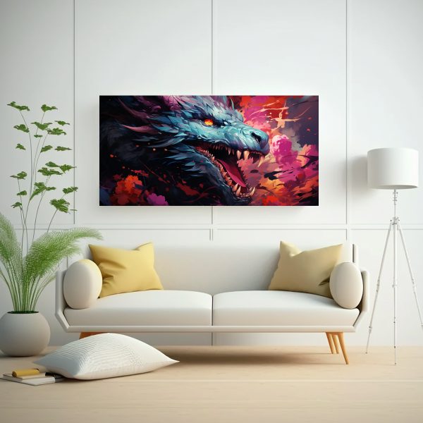 Decora tu hogar con este cuadro único que combina la fuerza del dragón con colores vibrantes y un toque de rosa Colócalo en la sala de estar para darle un aire místico y moderno a tu espacio Atrévete a añadir un toque neonoir a tu decoración y sorprende a tus visitas