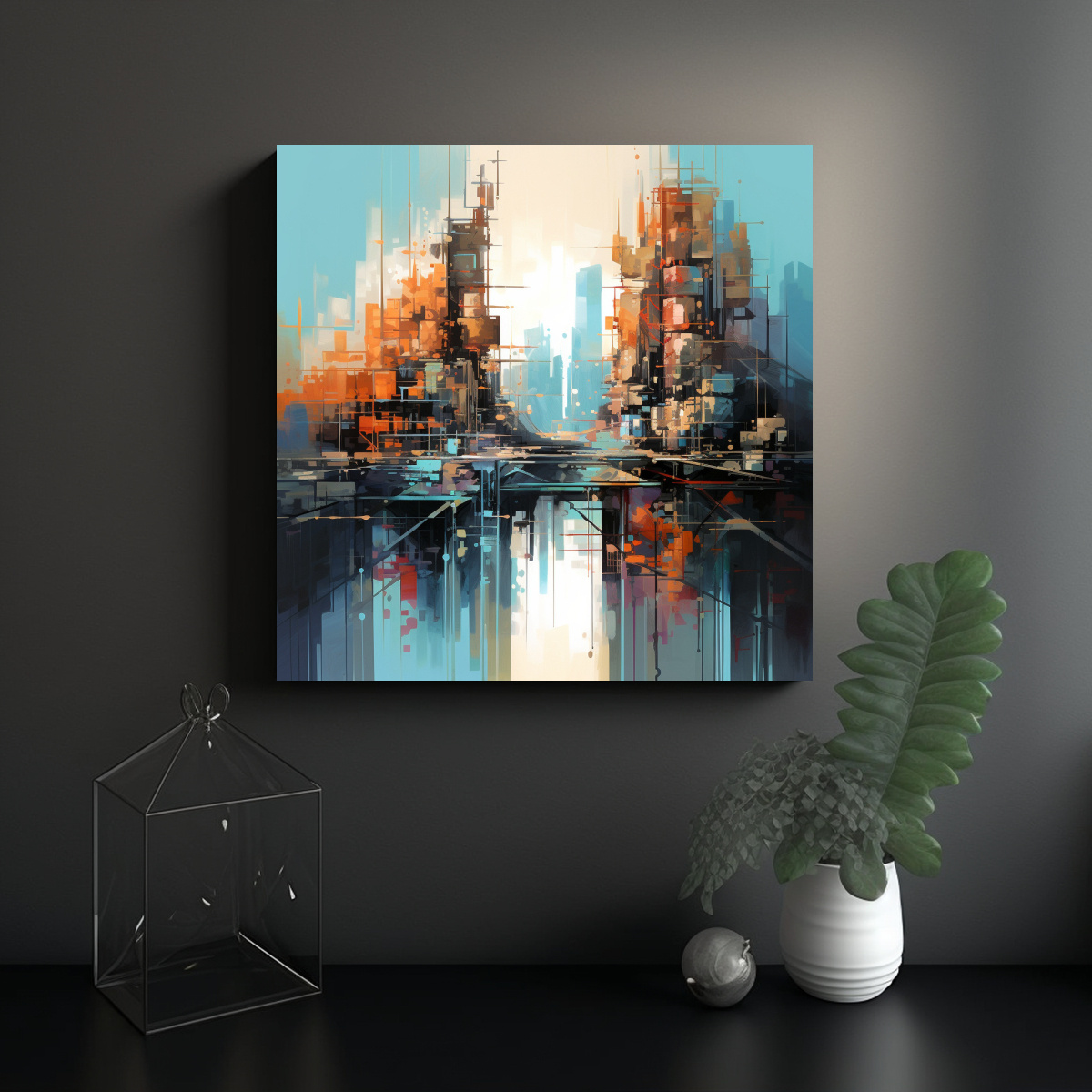 Este cuadro surrealista de Skylines de Taipei sería perfecto para decorar una sala de estar moderna Combínalo con muebles en tonos neutros y accesorios en color coral para darle un toque sofisticado y actual a tu espacio