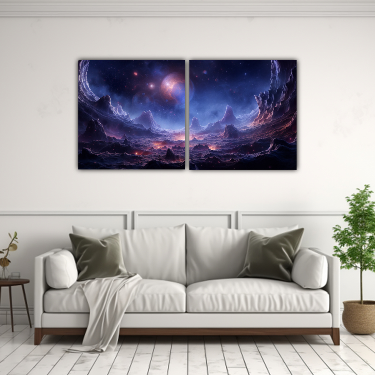 Coloca este cuadro vertical en tu sala de estar para agregar un toque de misterio y sofisticación Combínalo con muebles de tonos neutros como beige o blanco, y agrega cojines en colores que resalten como azul o lila El Cuadro Vertical Abstracto Viaje cósmico por agujeros de gusano será el centro de atención de tu sala, creando una atmósfera única y envolvente