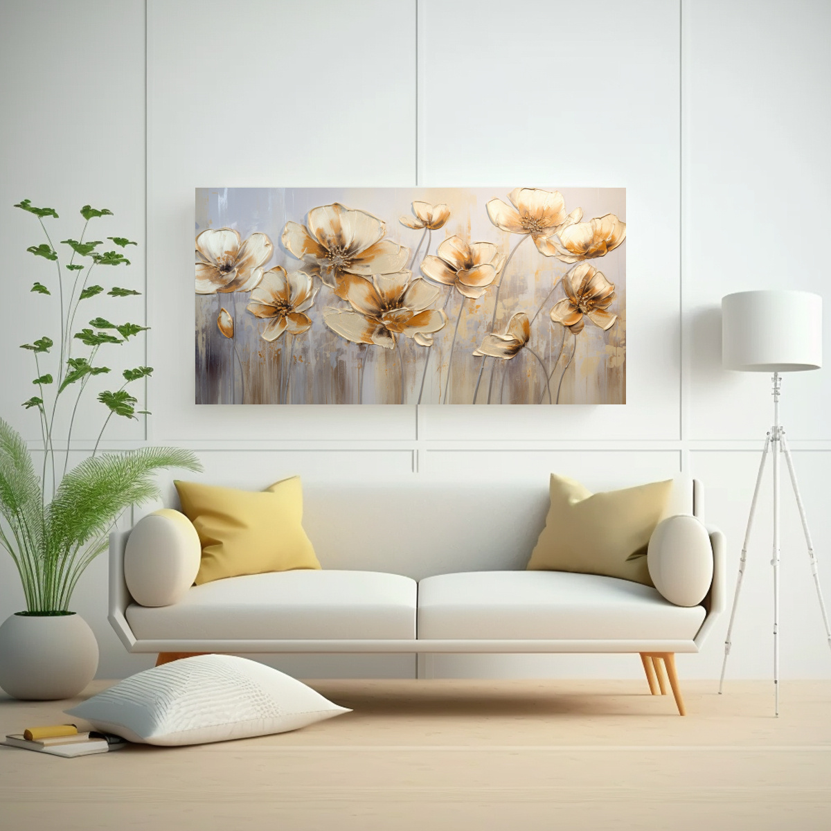 Cuadro Vertical Bonito De Amapolas Doradas En Lienzo Al Estilo De Pinturas Decorativas