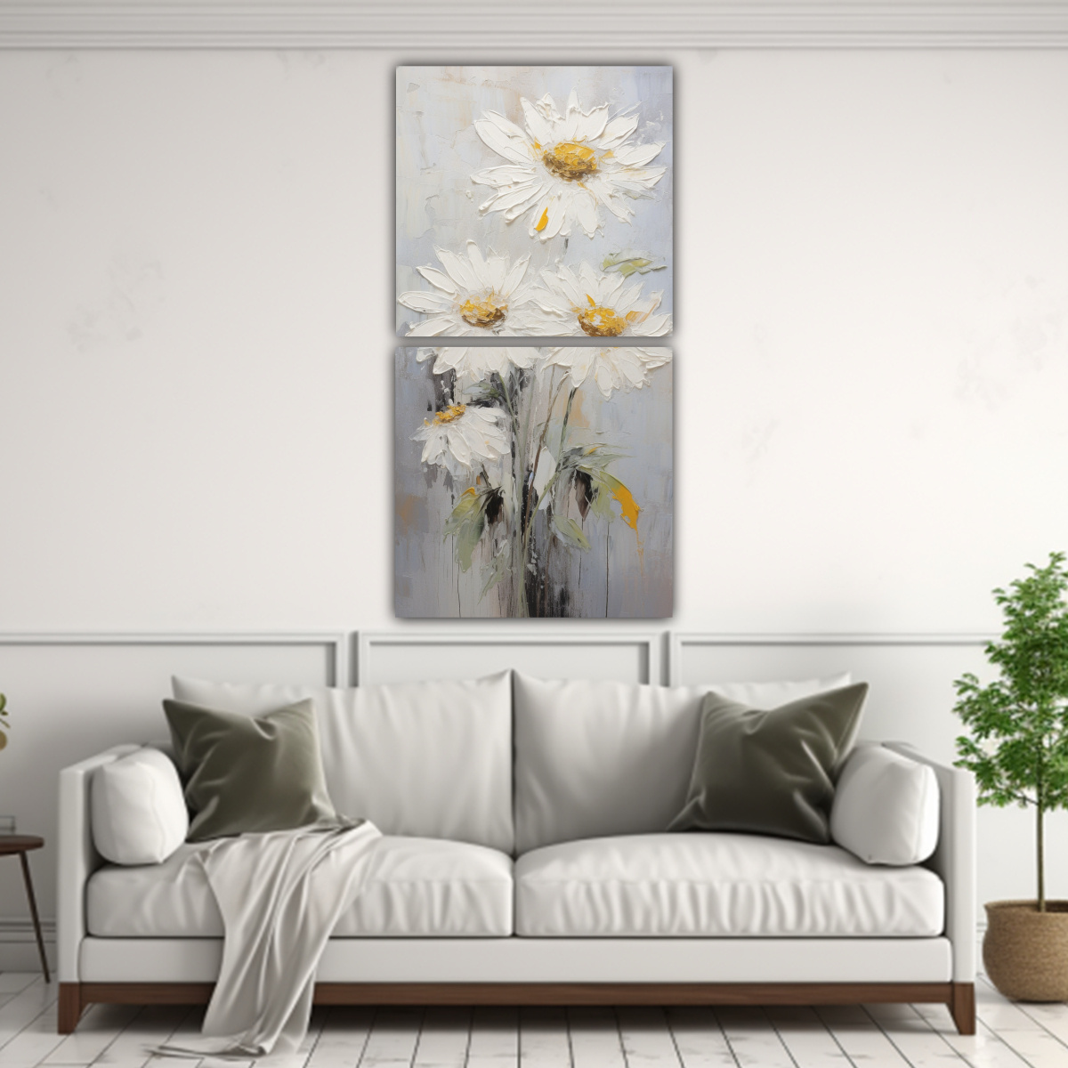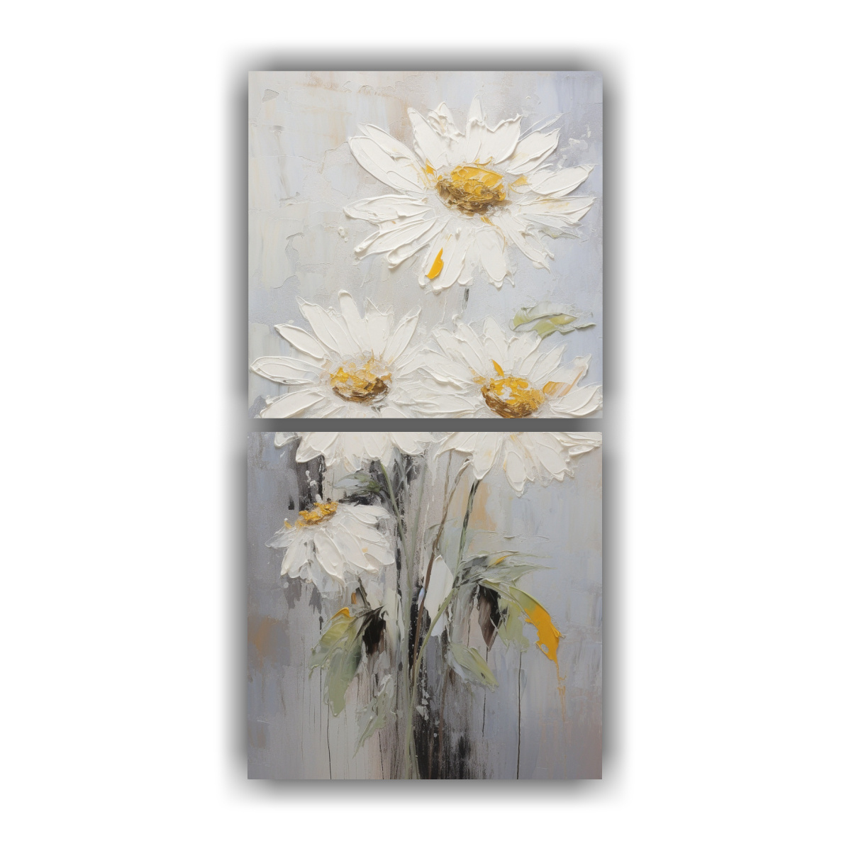 Cuadro Vertical De Girasoles Blancos En Lienzo Al Estilo De Pintura Decorativa