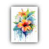 Cuadro Vertical Flor Tropical Protagonismo Acuarela Salpicaduras Coloridas Blancas.