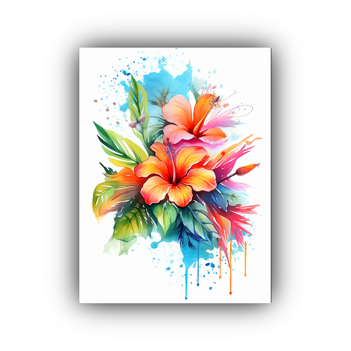 Decora tu espacio con el Cuadro Vertical Flor tropical protagonismo acuarela salpicaduras coloridas blancas Elige la mejor calidad y los precios más económicos en cuadros decorativos impresos en tela de alta calidad con bastidores de madera Nuestros diseños exclusivos darán vida a tus paredes Con entrega rápida y gratuita en Santiago y envíos express a regiones Crea un aspecto 3D más realzado y moderno con nuestro Cuadro Estilo Lienzo de Galería