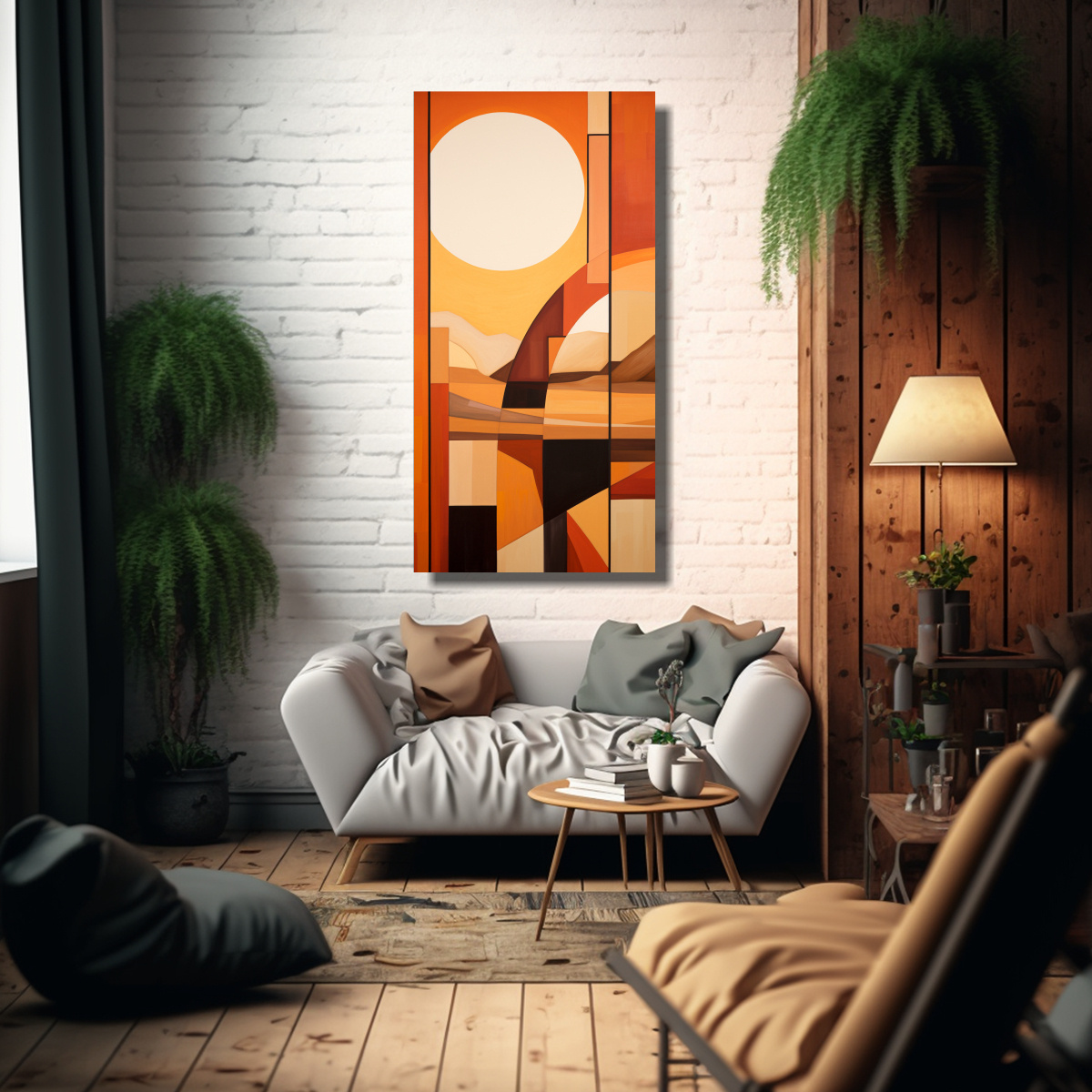 Cuadro Vertical Geométrico Abstracción Cálida Inspirada En Colores Del Desierto