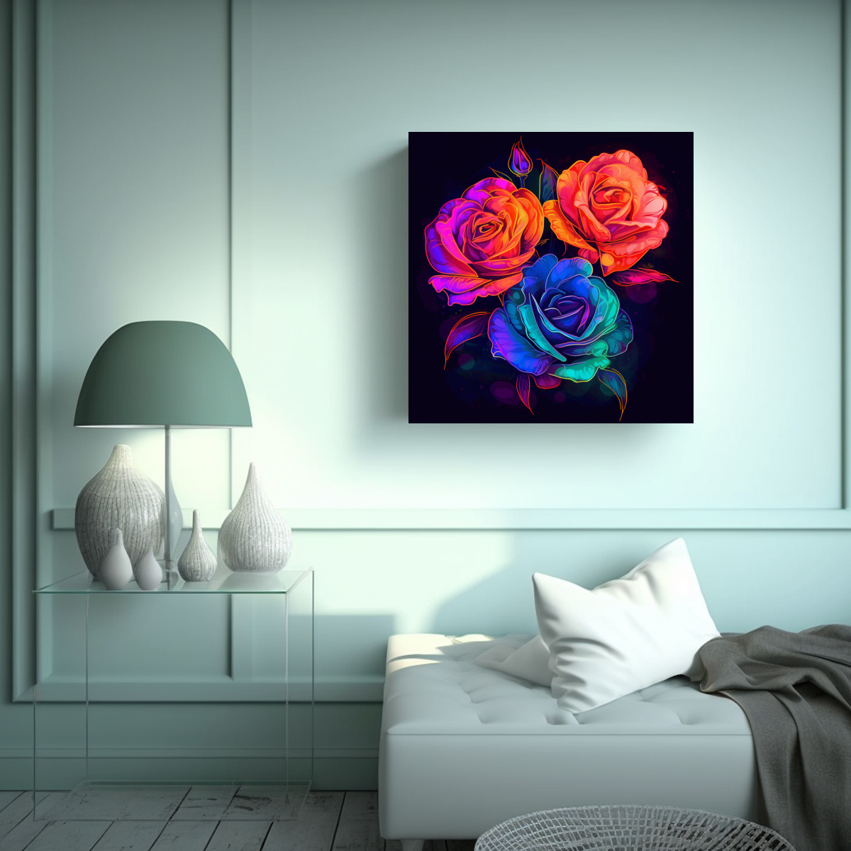 Cuadro Vibrante De Rosas Neón En Acuarela Y Lienzo En Movimiento