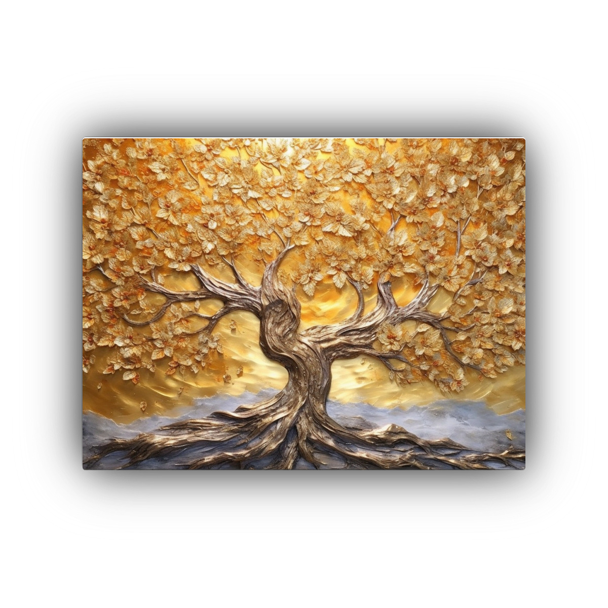 Cuadro Vintage árbol De La Vida Dorado Antiguo Con Diamantes Plateados