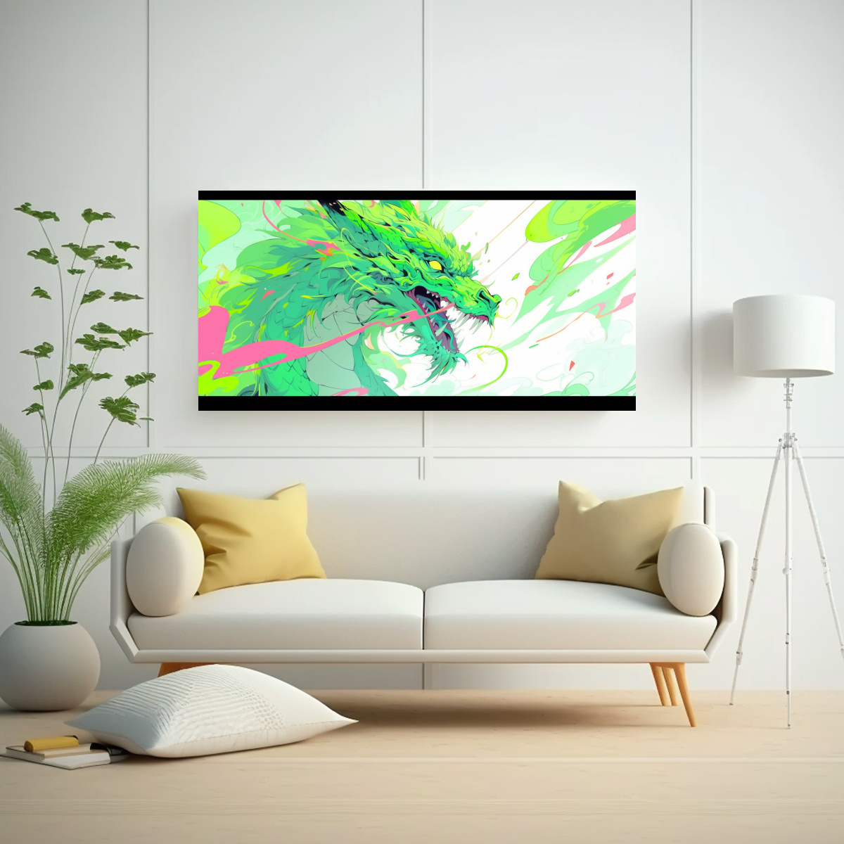 Para realzar la belleza del cuadro ‘Cuadro vintage con dragón en tonos pastel y verde, atmósfera neonoir’, te recomendamos colocarlo en una pared de tonos neutros para que resalte Combínalo con muebles en colores suaves para crear un ambiente armonioso y misterioso en tu hogar