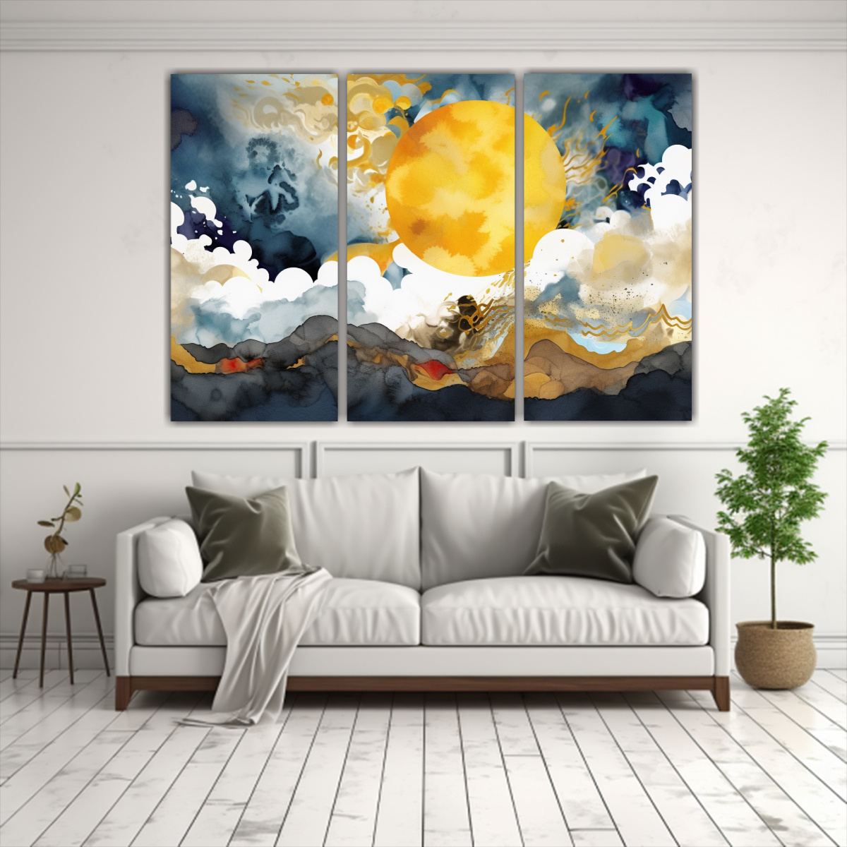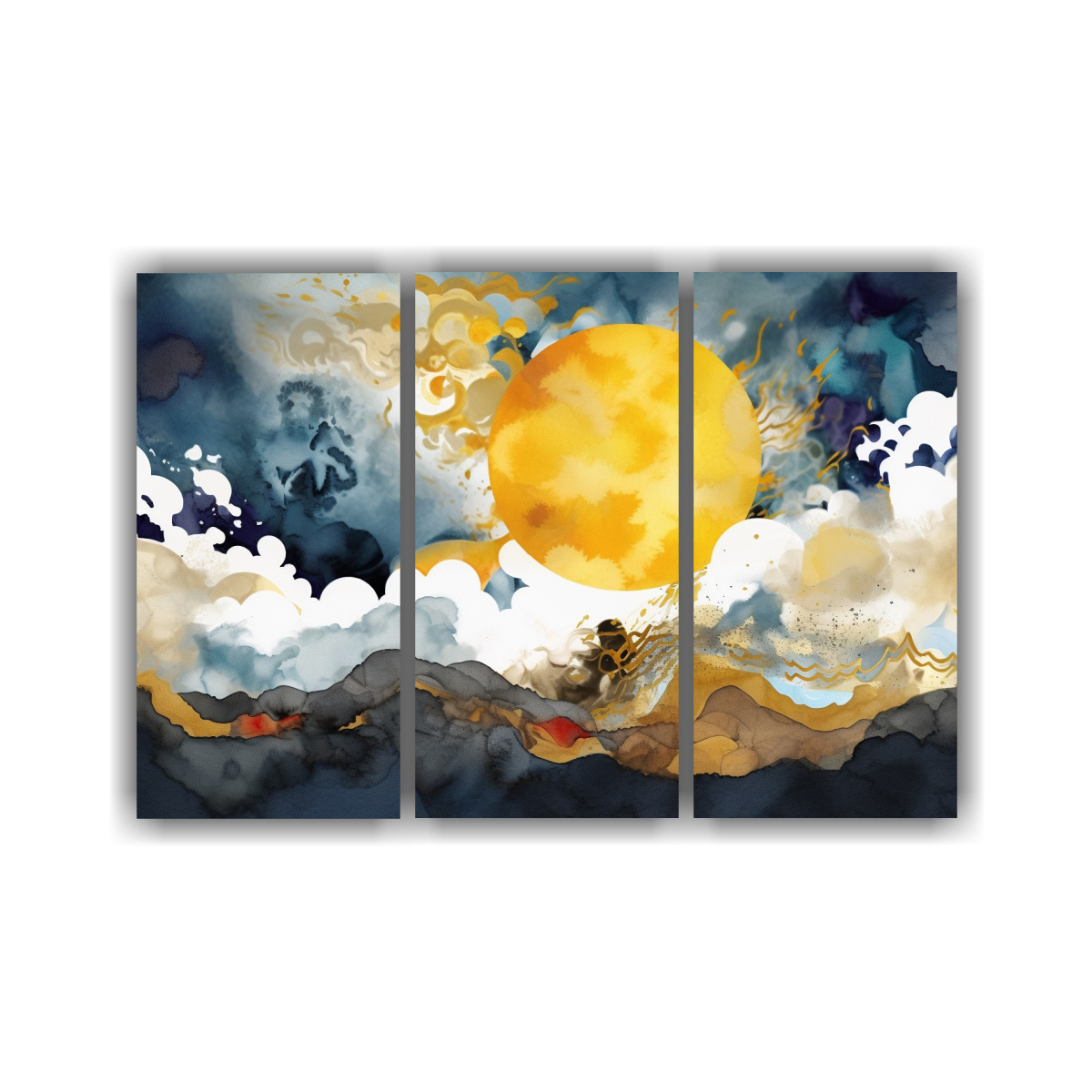 Cuadro Vintage Con Sol Dorado A La Derecha Y Rodeado De Blanco.