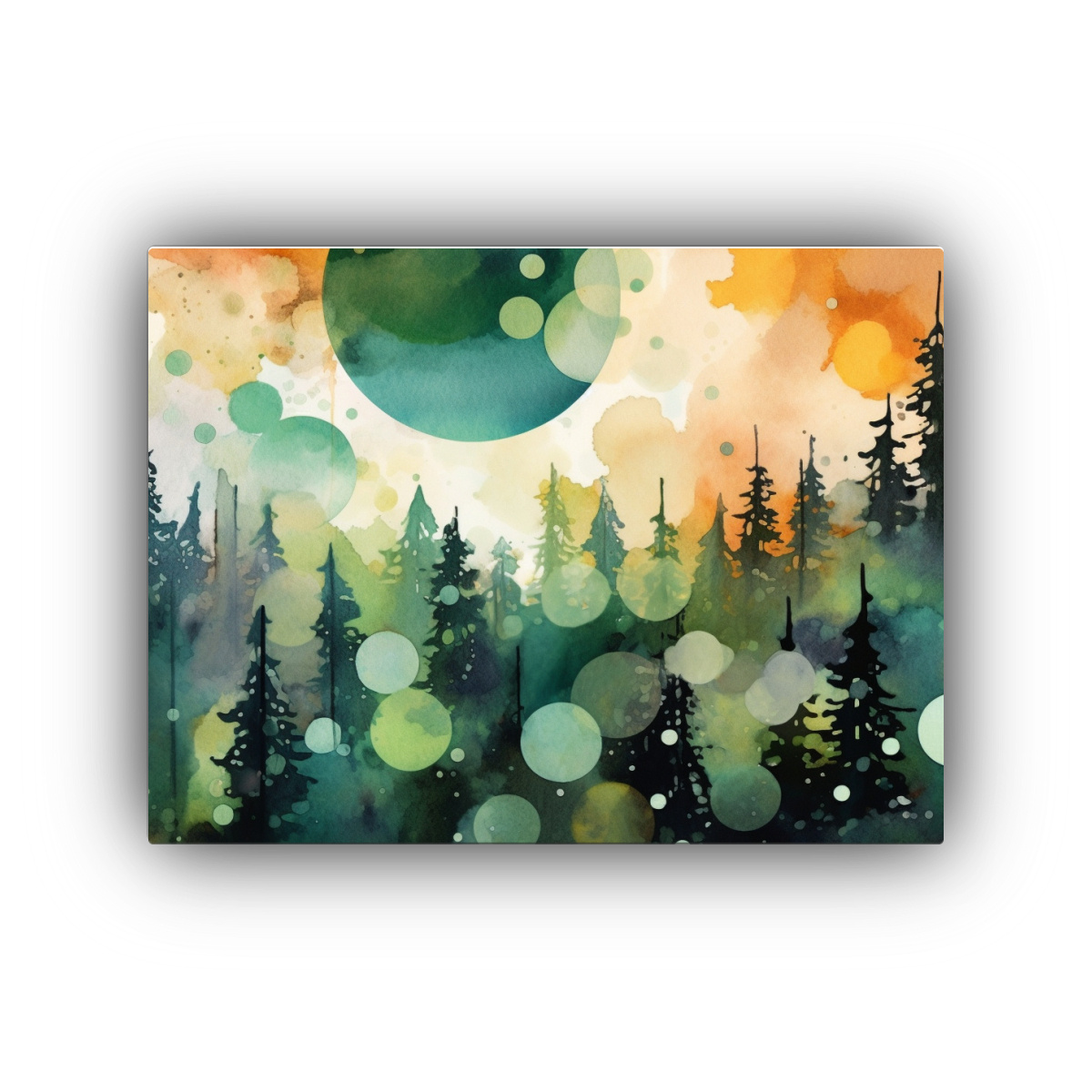 Cuadro Vintage De Tela Con Vibrantes Azulejos Y Círculos Verdes En Bosque.