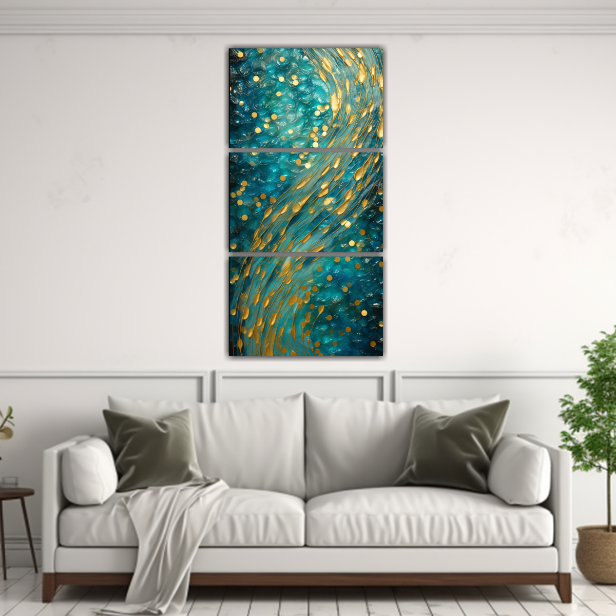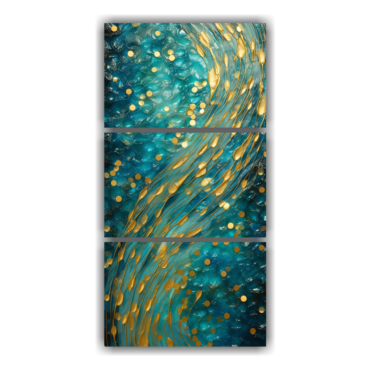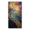 Cuadro Vintage Estético Estilo Puntillismo Luminoso De Tríptico Hecho Con Pintura Líquida