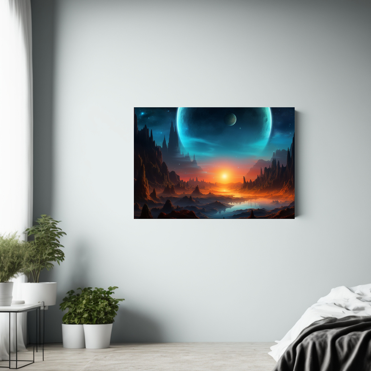 Cuadro Vintage Paisaje Alienígena En La Oscuridad Noche Estilo Exótico