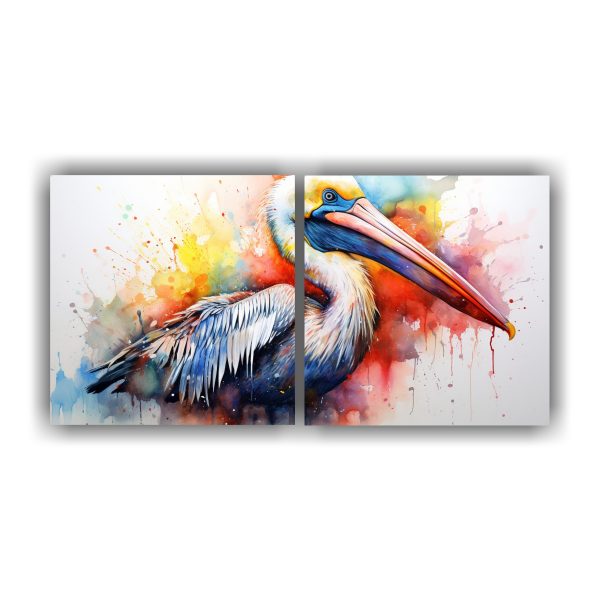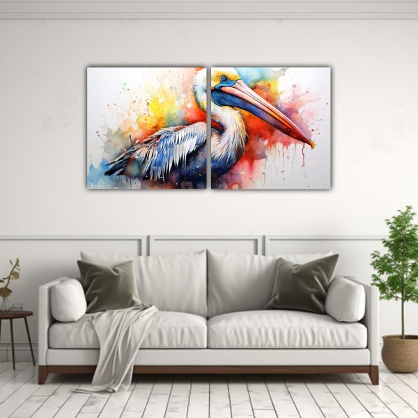 Cuadro Vintage Tema Pelícano Acuarela Colorida Estilo Pintura 21