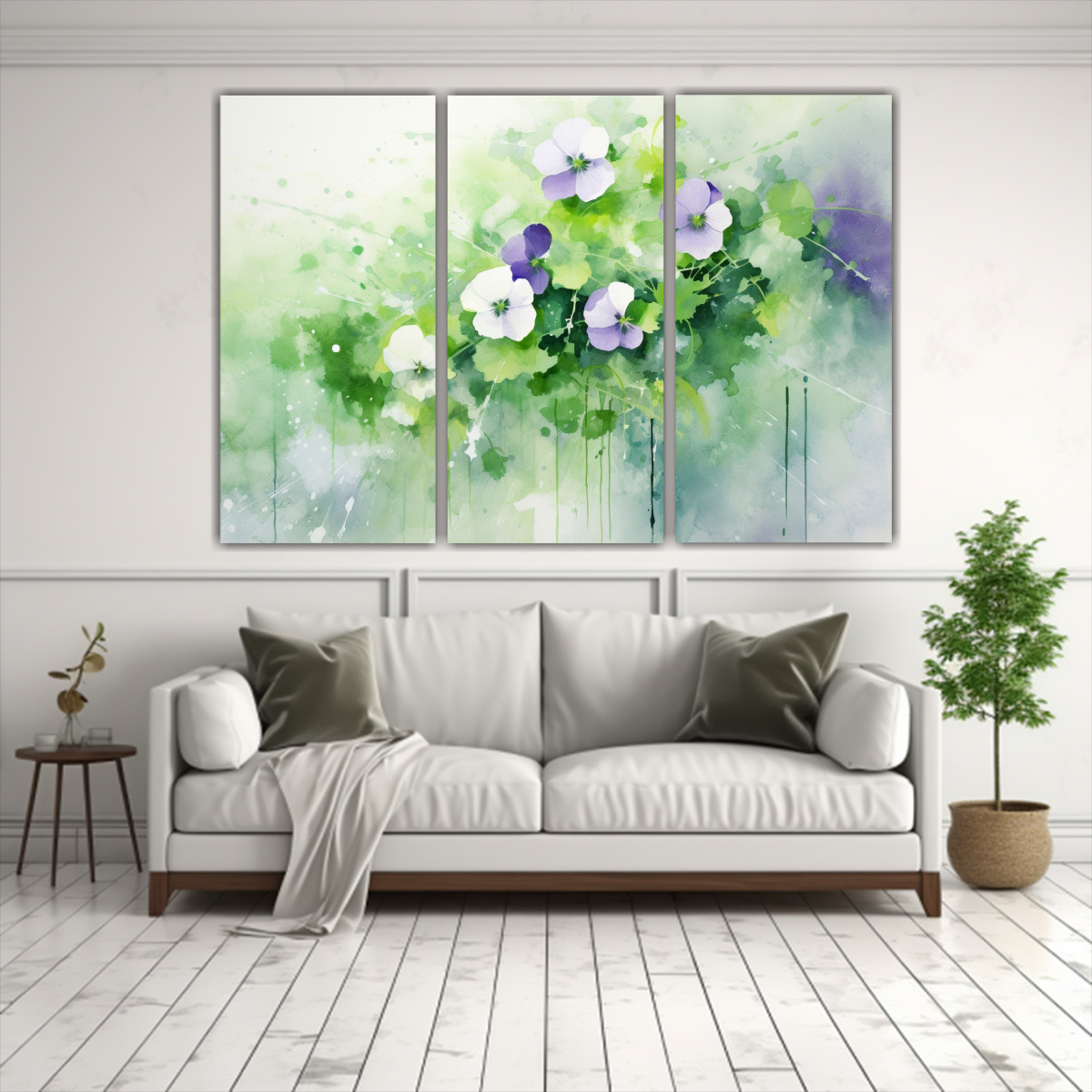 Este cuadro abstracto Violets flowers Green y White es perfecto para decorar tu sala de estar Colócalo sobre un sofá de tonos neutros para resaltar sus colores vibrantes