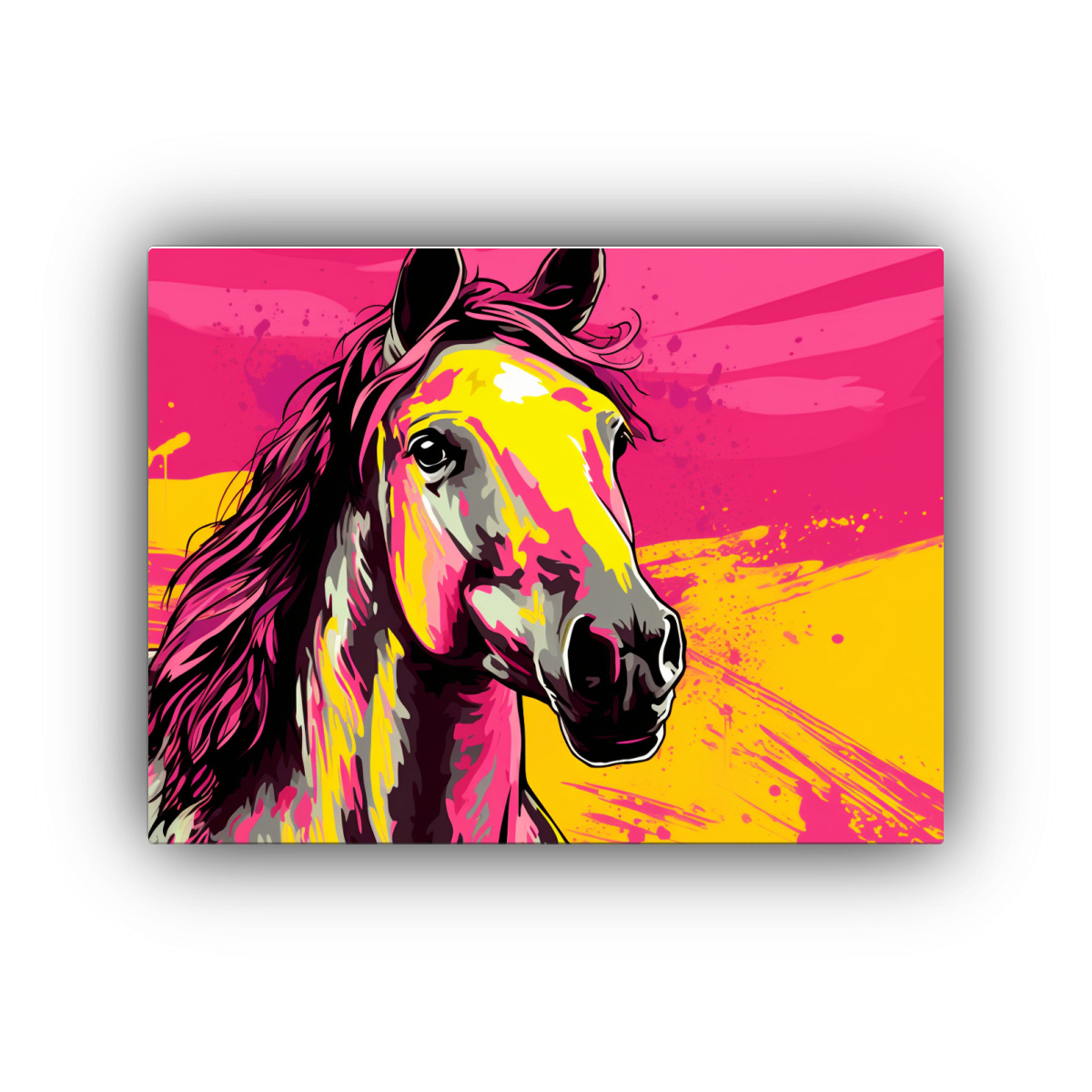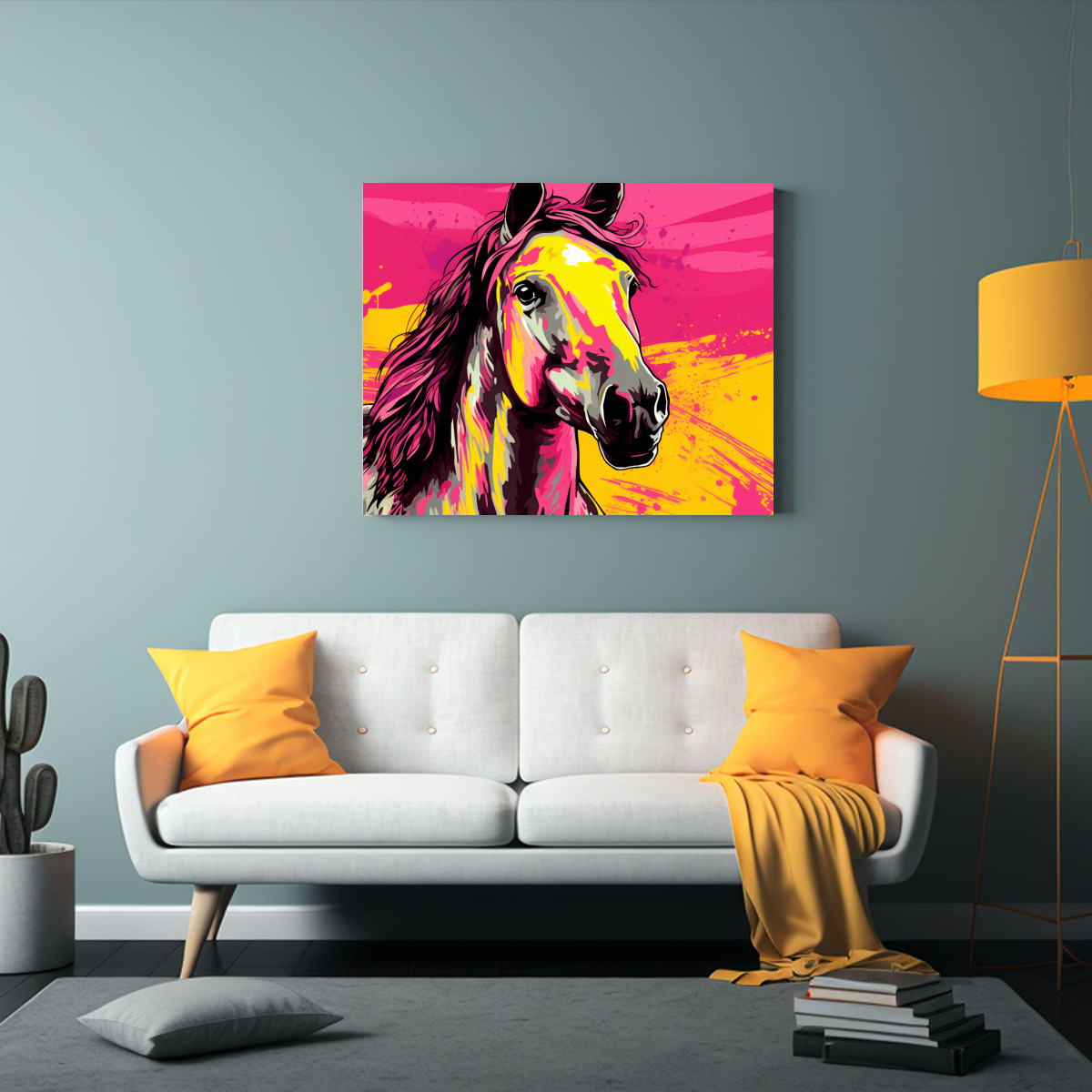 Cuadro Vitalidad Clydesdale En Amarillo Y Rosa Arte Pop Neo.