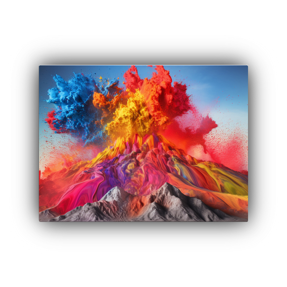 Lienzo De Tela Decoración Perspectiva a professional DSLR photo of a volcano erupting Colores: Plateado, Carmesí, Turquesa, Azul Marino grisáceo, Coral, Gris Calidad y precio inmejorables en DecoCuadros