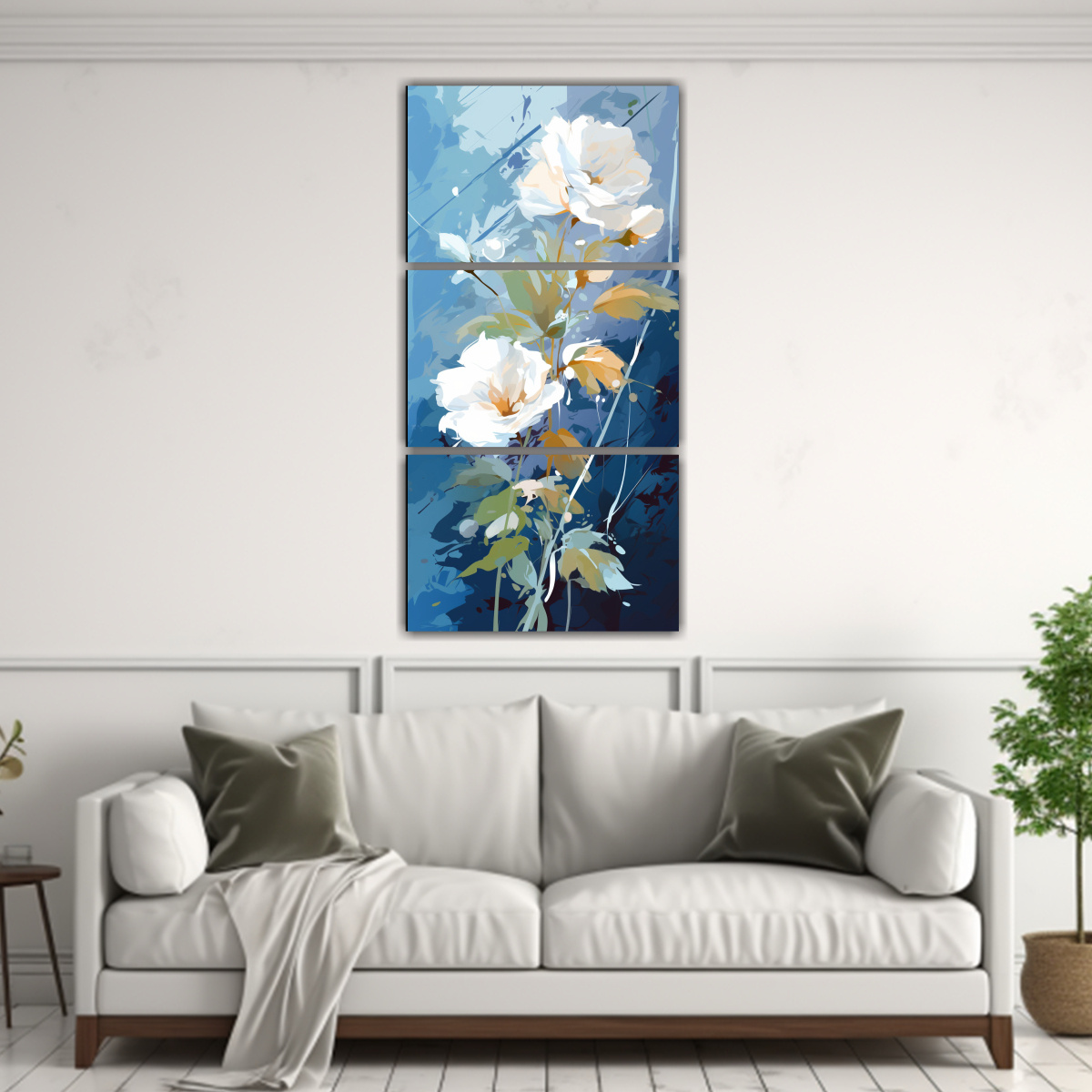 Cuadroes De Hierbas En Blanco: Set 3 Arte De Pared Con Ambiente Neonoir.