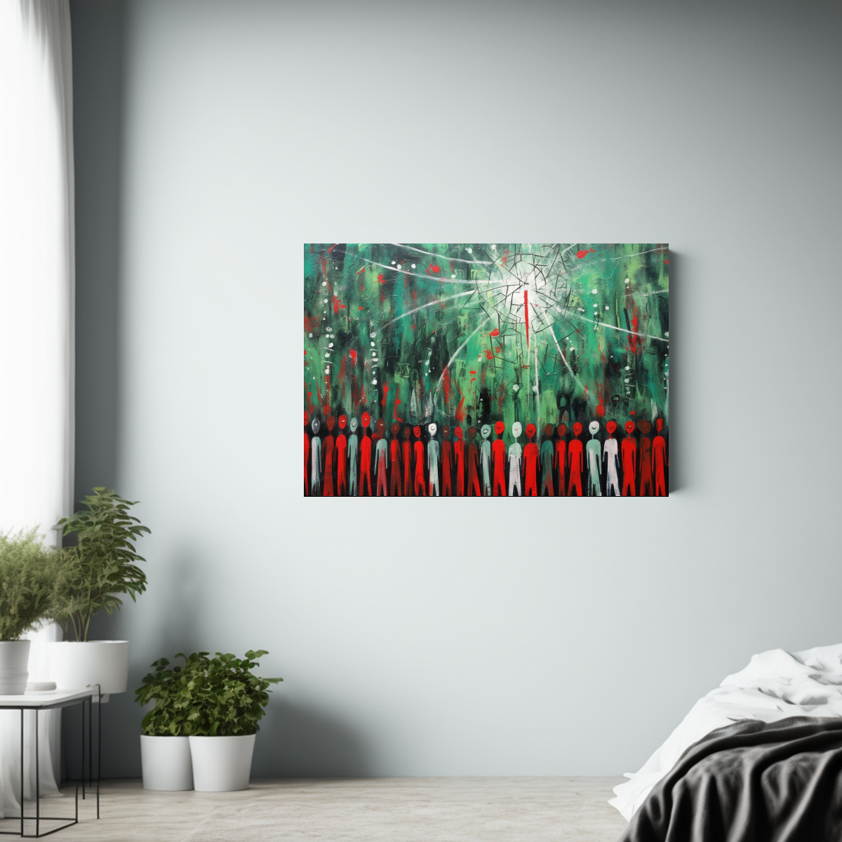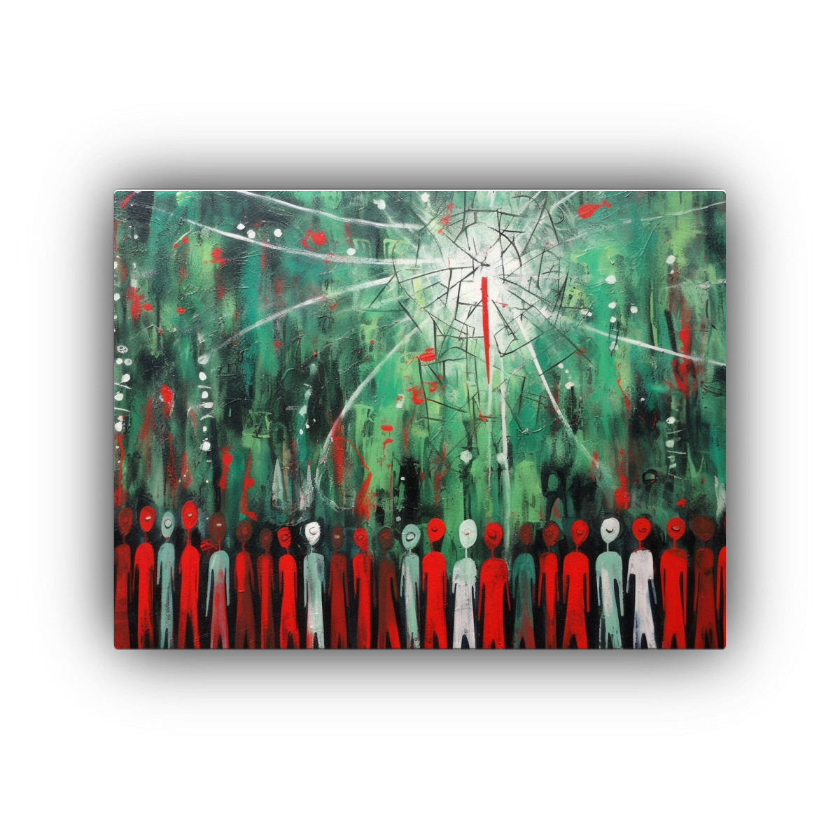 Este cuadro en tonos verde oscuro y rojo es ideal para dar un toque de sofisticación a tu sala de estar Colócalo sobre un sofá gris para resaltar sus colores, o en una pared blanca para crear un contraste elegante ¡Atrévete a decorar con estilo y personalidad!