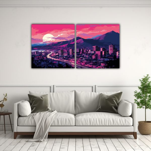 Cuadroes Modernas De Santiago En Chile En Colores Vibrantes Y Rosados