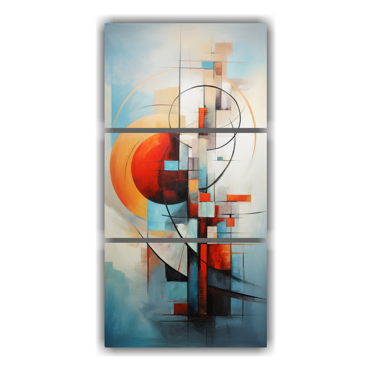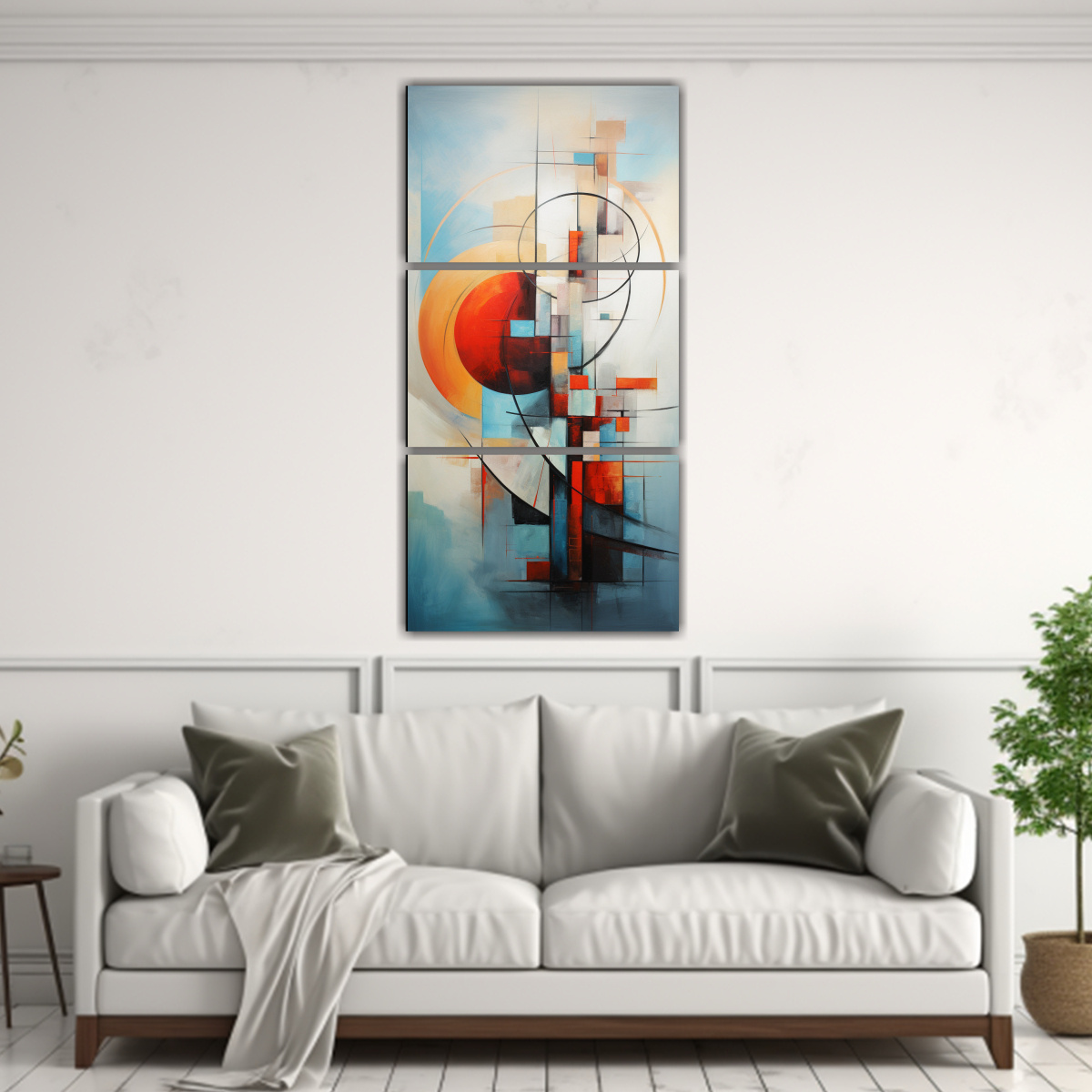 Coloca este exclusivo Set 3 Cuadros Abstracción Expresividad en la pared principal de tu sala moderna Sus tonos Azul Marino grisaceo, Plateado, Carmesí, Gris, Coral y Turquesa se complementarán a la perfección con muebles en tonos neutros como el blanco o el gris ¡Consigue un ambiente sofisticado y moderno con estos cuadros!