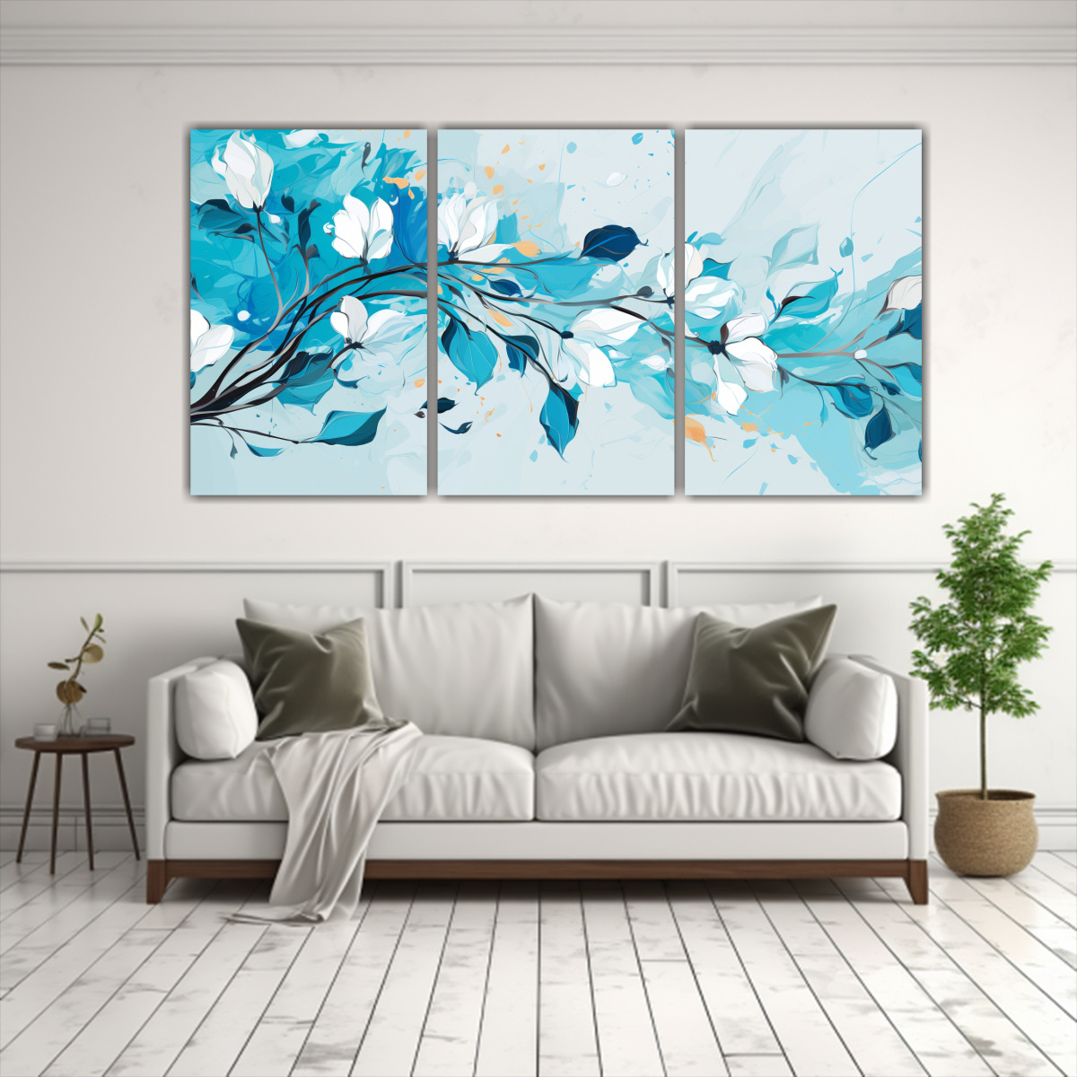 Cuadros Abstracción Figuras En Blanco Y Turquesa, Atmosfera Neonoir En La Decoración De Set 3 Cuadros