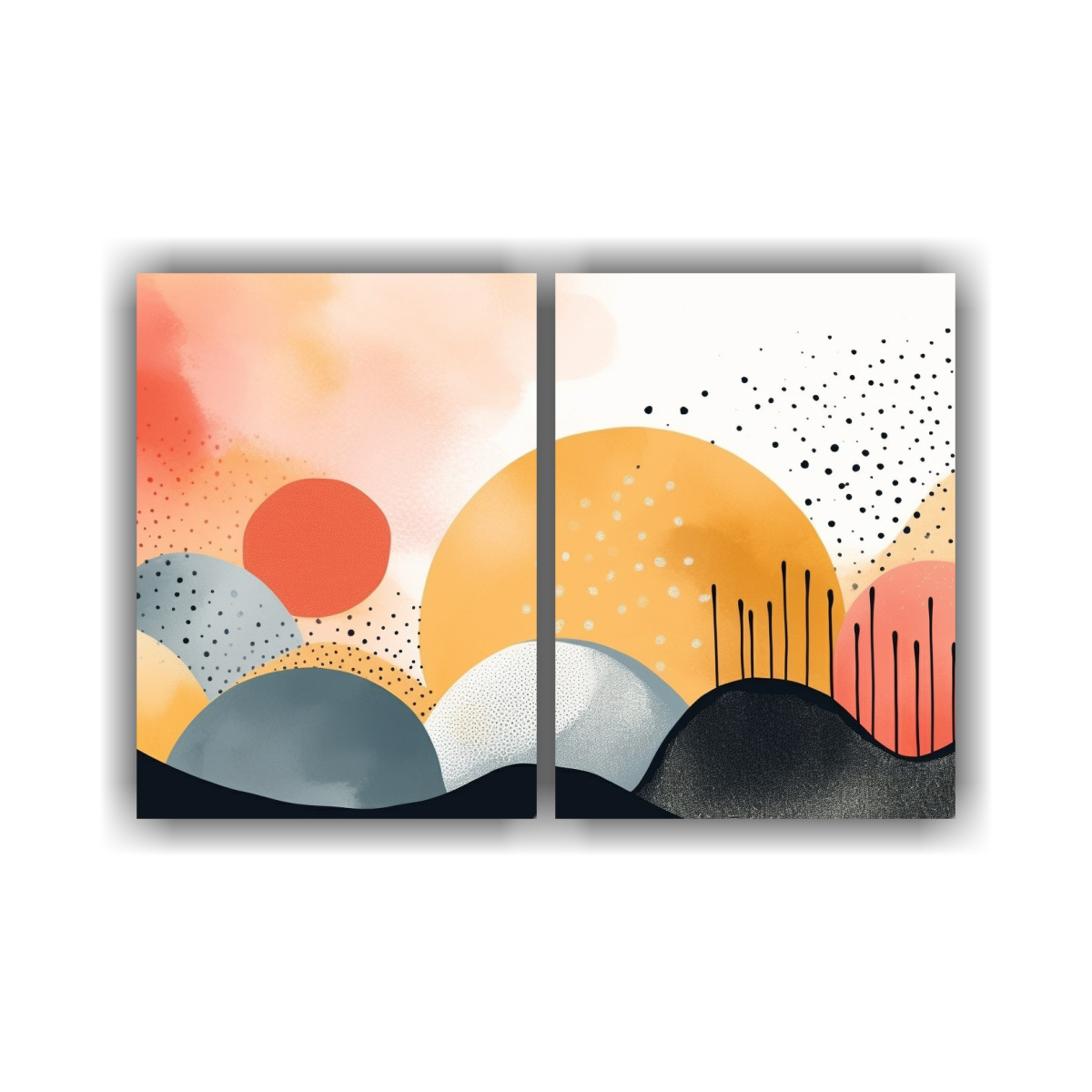 Para realzar la elegancia de tu sala de estar, coloca este Set 2 Cuadros en un muro principal junto a muebles en tonos neutros y accesorios en colores suaves Lograrás un ambiente armonioso y sofisticado