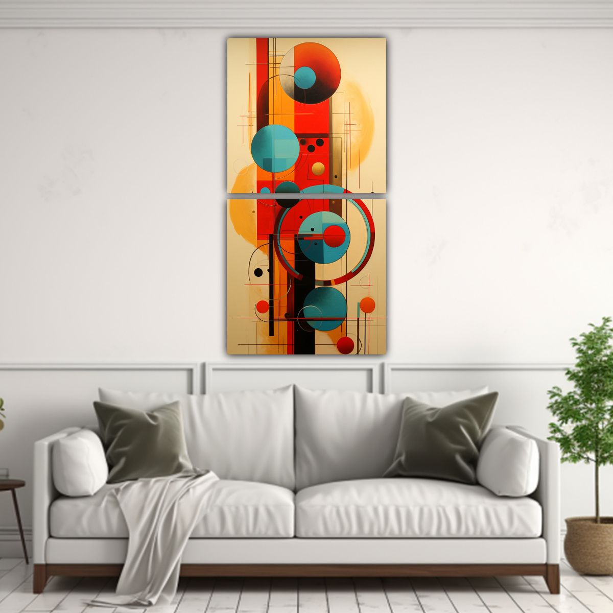 Los cuadros abstractos ambiente con círculos de DecoCuadros son la opción perfecta para añadir un toque moderno y elegante a tus espacios Nuestros cuadros están impresos en tela de alta calidad con bastidores de madera, lo que garantiza su durabilidad y resistencia Con una combinación de colores carmesí, plateado, azul marino grisáceo, mostaza, menta, beige, turquesa, dorado y amarillo claro, estos cuadros son ideales para crear una atmósfera única en tu hogar En DecoCuadros tenemos una amplia gama de diseños exclusivos y ofrecemos la mejor calidad del mercado a precios económicos Además, nuestras entregas son rápidas y gratuitas en Santiago, y ofrecemos envíos express a regiones Aprovecha esta oportunidad y decora tu hogar con estilo